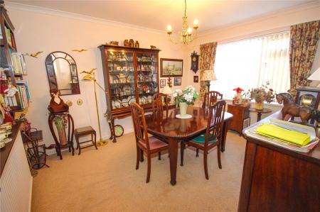 The entrance porch gives access via inner door into the entrance hallway with understairs storage cupboard. Immediately on your left is a well-proportioned living room which has dual aspect with window to front and patio doors to the rear alongside central gas fireplace. There is also a separate dining room with serving hatch to kitchen and large picture window to front.