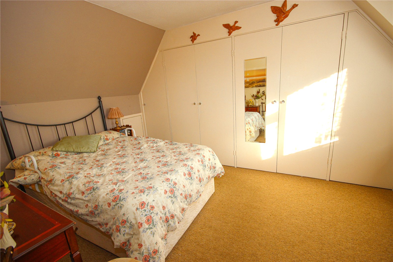 Stairs rise to the first-floor landing where there is an airing cupboard with water tank and access to the roof void. There are two double bedrooms both with eaves access- bedroom 1 benefits from plentiful built in storage and distant views whilst bedroom 2 faces the front. There is also a contemporary shower room with walk in shower and vanity unit with wash hand basin and concealed cistern WC.