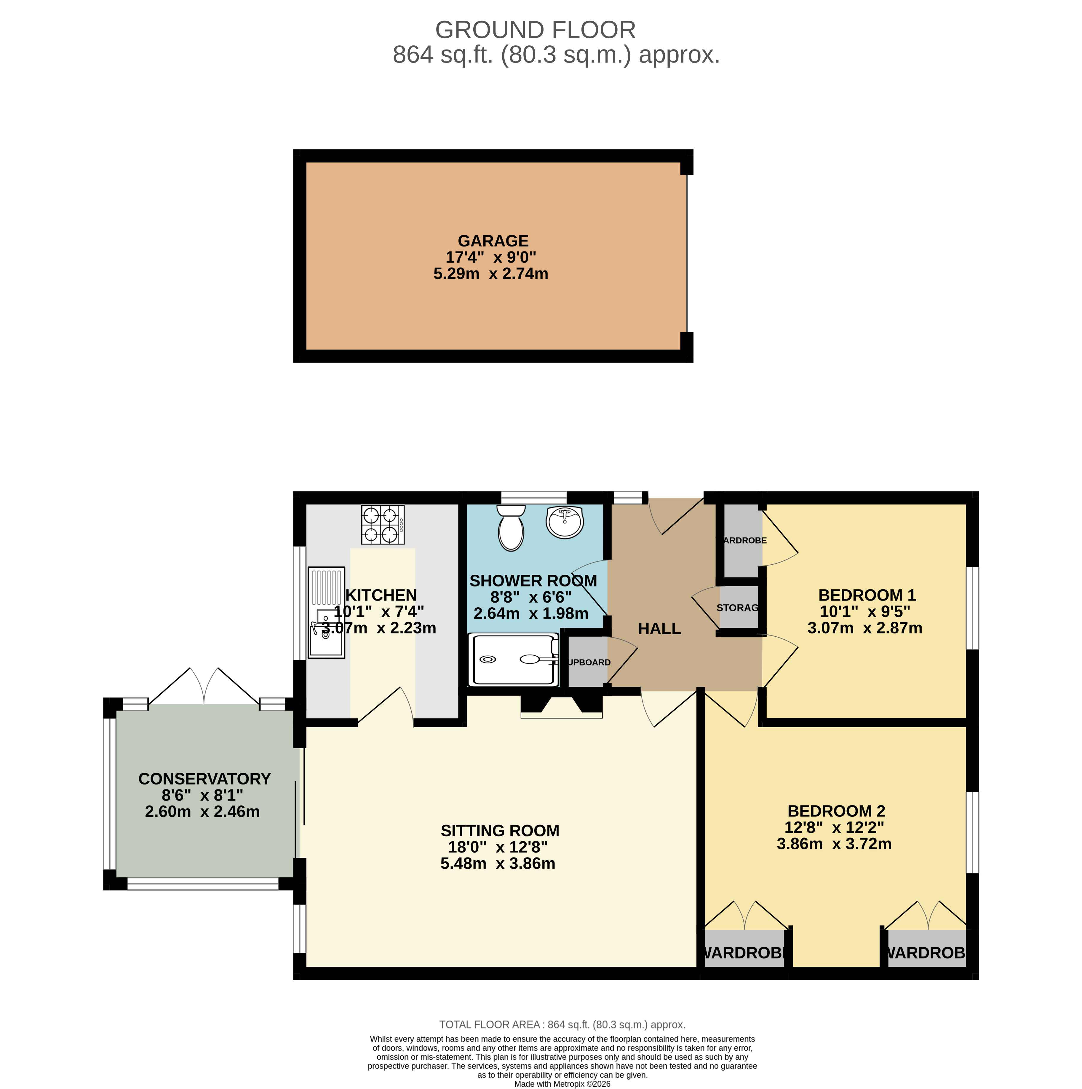 Well presented two bedroom bungalow situated in a quiet cul-de-sac with garage and private enclosed south facing garden.