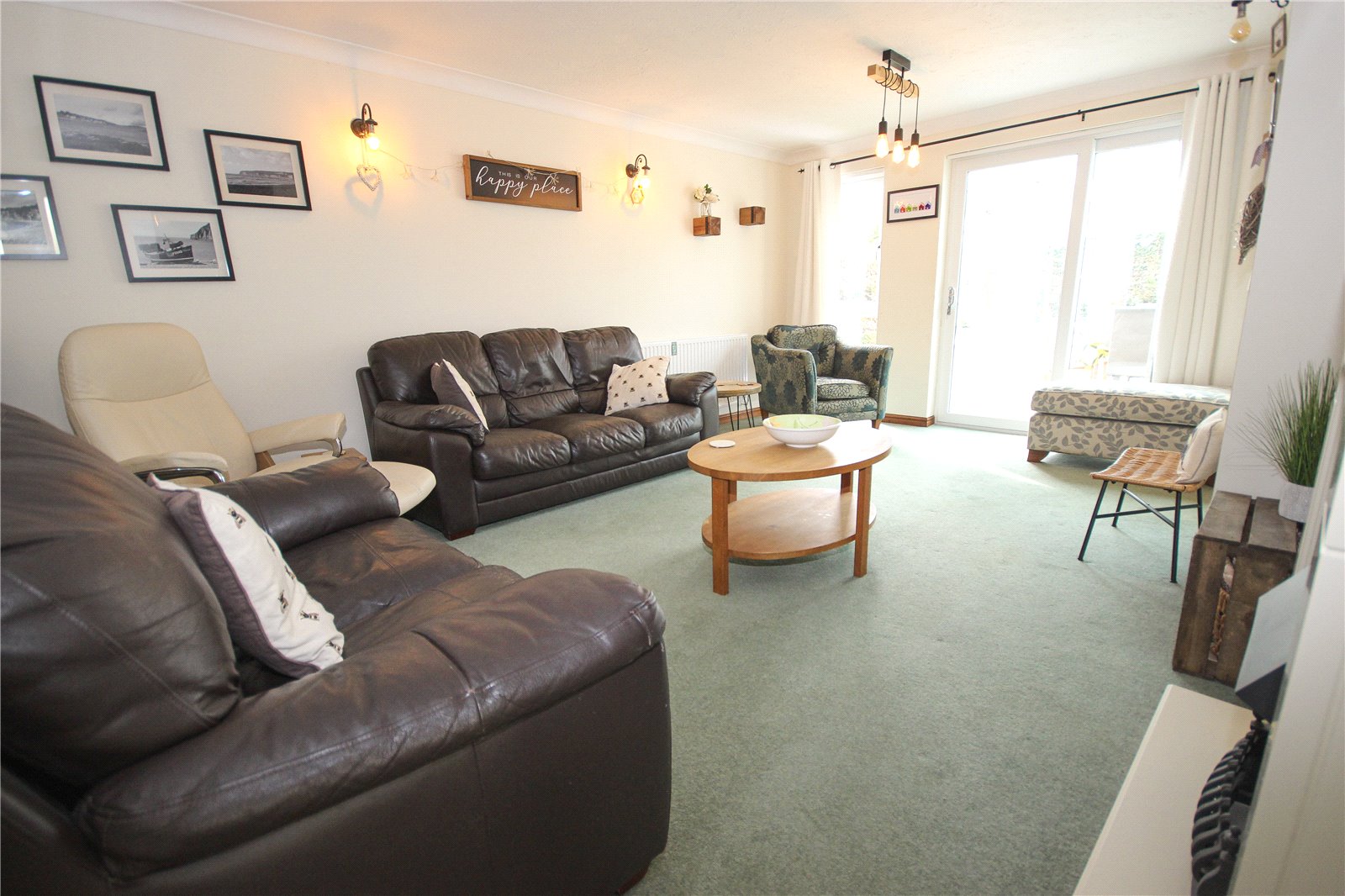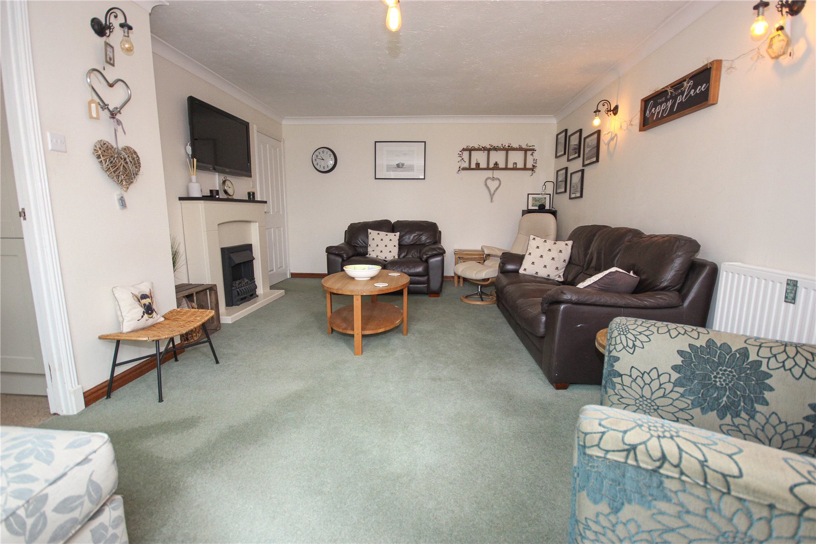 The property benefits from a spacious living room with central electric fireplace and marble style surround. A sliding door from the living room leads out to a pitched roof conservatory with French doors to the enclosed rear garden beyond.