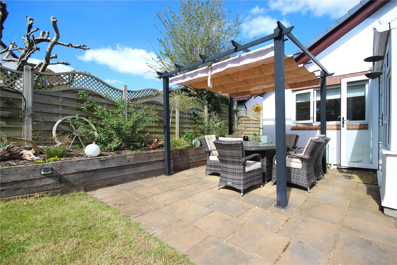 Outside: The front of the property benefits from a lawned area with central planted area of mature shrubs. There is a hardstanding driveway to the side with parking in front of the single garage. A paved patio pathway leads to the front door and side pedestrian gate to the attractive enclosed rear garden.