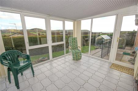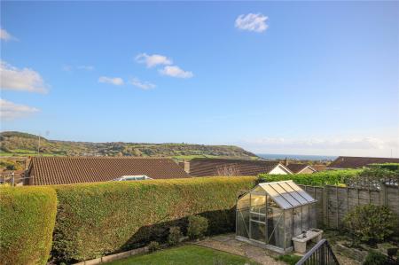The front door opens into the entrance hallway which has two cloakroom cupboards to one side. On your left is a sizeable living room with picture window overlooking the front and a central brick fireplace with a tiled hearth and gas fire. Internal double-glazed doors open into the adjoining dining room which has sliding patio doors opening on to the conservatory which has spectacular panoramic views across from Axe Cliff along the surrounding countryside and estuary. The conservatory is fully glazed with a glazed roof and tiled floor. Two doors lead out from either side to the rear garden beyond.