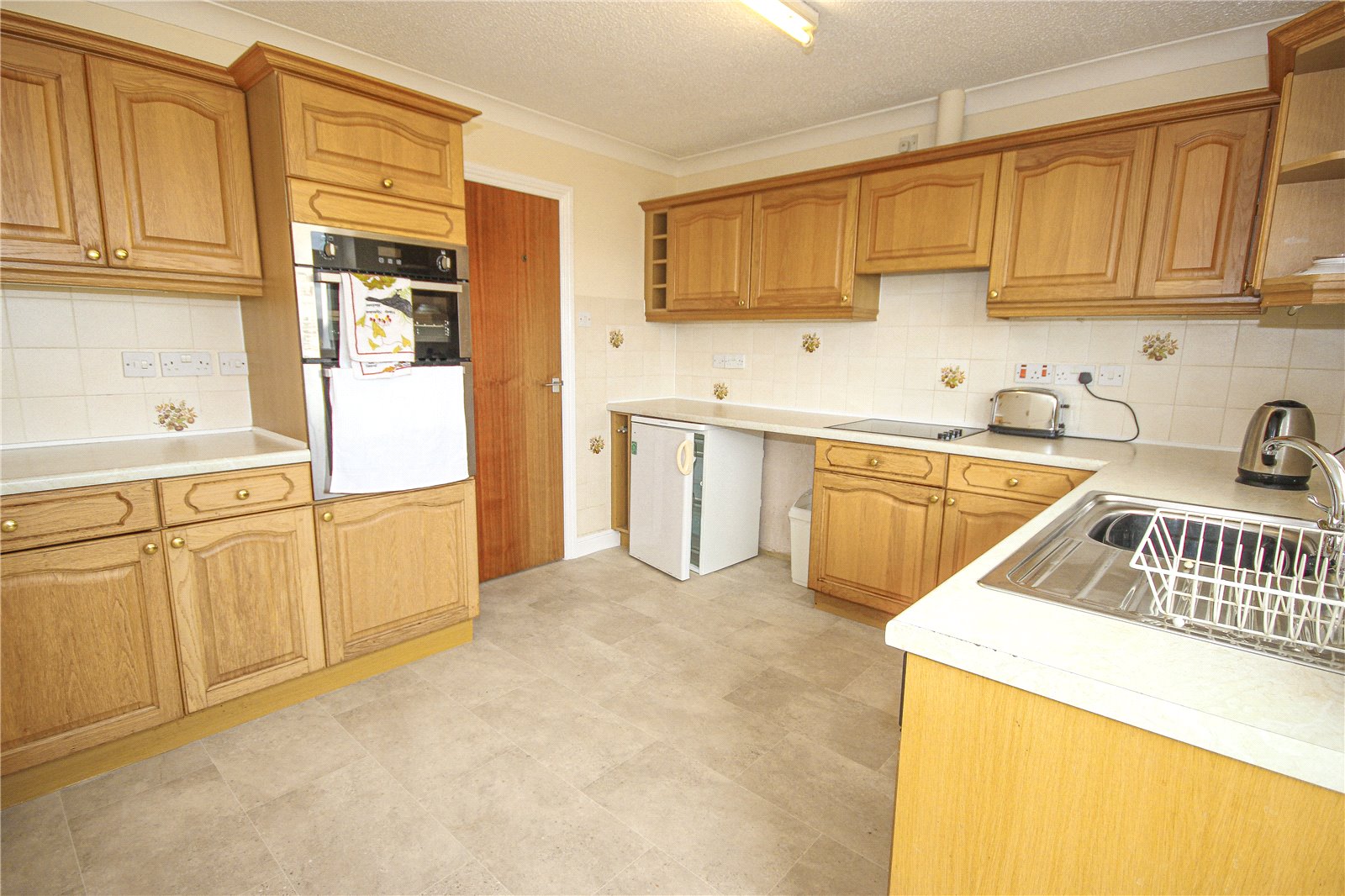 The kitchen is fully fitted with a range of matching wooden base and wall units, laminate worktops, tiled splashback, sink and laminate flooring. There is space for an undercounter fridge and freezer, alongside a fitted ceramic hob with extractor over, integral double oven and integrated dishwasher. A door leads out from the kitchen to a raised patio area, again making the most of the lovely views beyond.