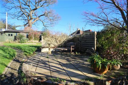 A pedestrian wooden gate provides access to the rear garden where there is a pathway running alongside the rear of the house with access to a water tap and the electric meter cupboard. Steps lead up to the main garden area which is mainly laid to lawn with plenty of mature flower and shrub beds and a paved seating area to one side.