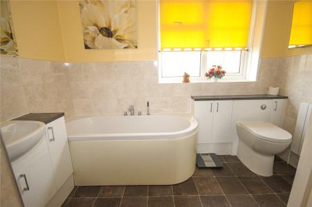 The property also benefits from a contemporary bathroom with tiled flooring and part tiling to the walls with suite comprising walk in corner shower, curved bath, concealed cistern WC, fitted vanity units, wash hand basin with vanity unit and a heated a towel rail.