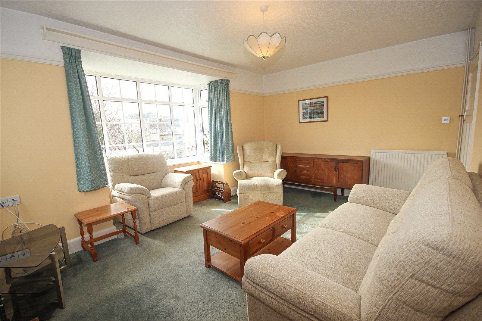 The living room is also a sizeable room, situated to the front of the property with a central fireplace with wooden mantel, marble style surround and gas fire, alongside a large square bay window.