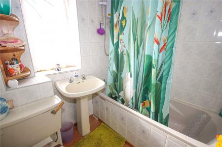 The bathroom is fully tiled with WC, wash hand basin and bath with electric shower over.