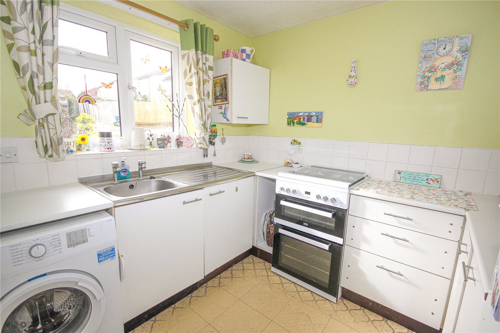 The front door opens into the entrance hallway with kitchen on the left which is fitted with a range of matching base and wall units, laminate worktops and sink. There is also space for a freestanding cooker, tall fridge freezer and space/plumbing for a washing machine.