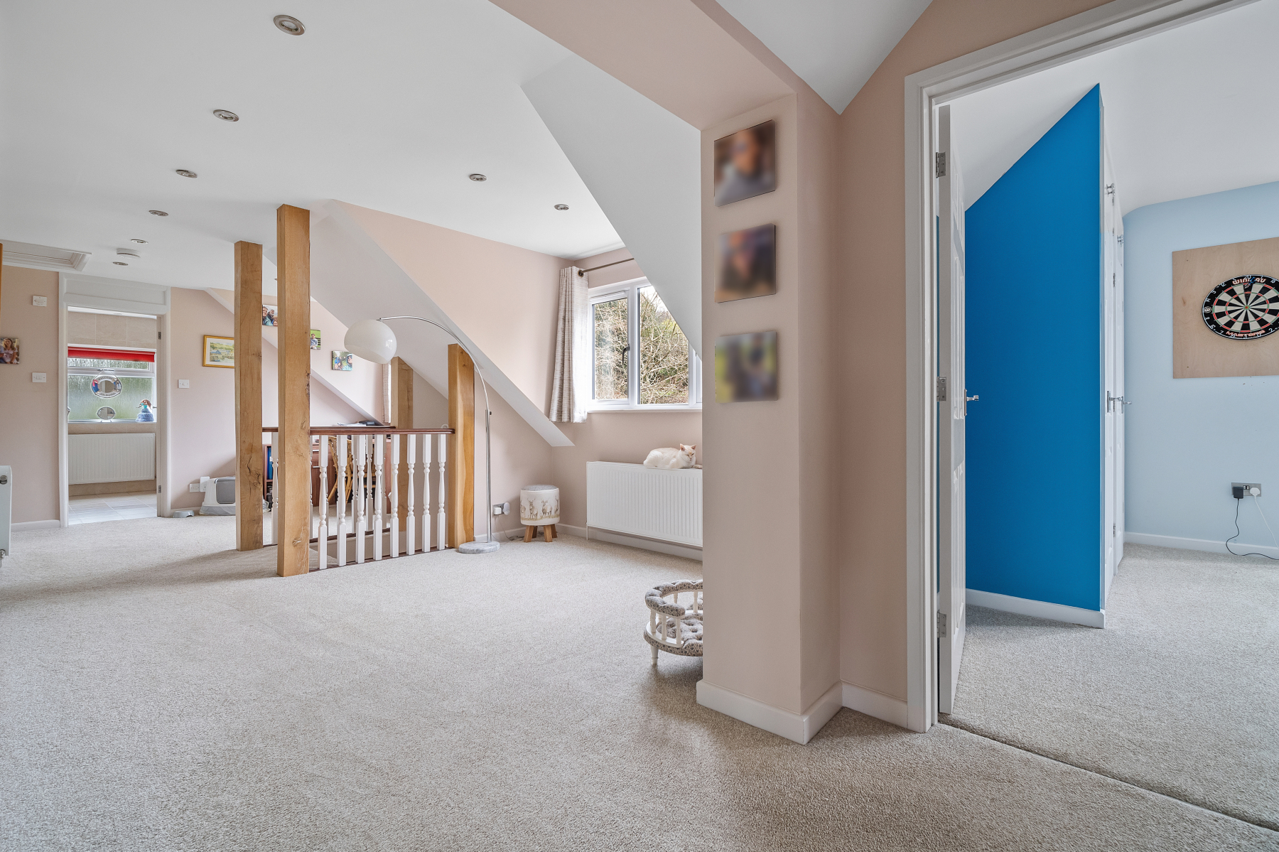 The real showstopper on the ground floor with its exposed brickwork, under floor heating, patio doors out to the garden and log burner is the sizeable dual aspect SITTING ROOM. This superb room is flooded with natural light and flows effortlessly into the PLAYROOM/ DINING ROOM which is perfect for keeping all those toys in one place. With its bay fronted window BEDROOM 5/ OFFICE concludes the ground floor accommodation. This versatile room offers a useful ensuite which is complete with a window to the side aspect, bath with shower over, W.C, vanity sink, chrome heated towel rail and is fully tiled.