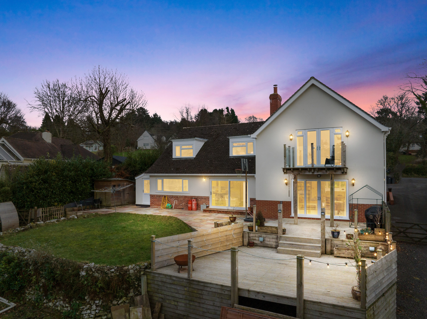 To the SIDE of the property the driveway continues before a five-bar gate gives you access to the fully enclosed REAR garden. This area is the trophy asset of this wonderful home offering numerous areas for children and adults to socialise and play whilst enjoying the countryside views. The decked area at the rear of the property is the perfect place for Alfresco dining on those lovely summer evenings allowing the patio area to be utilised for BBQs and games.