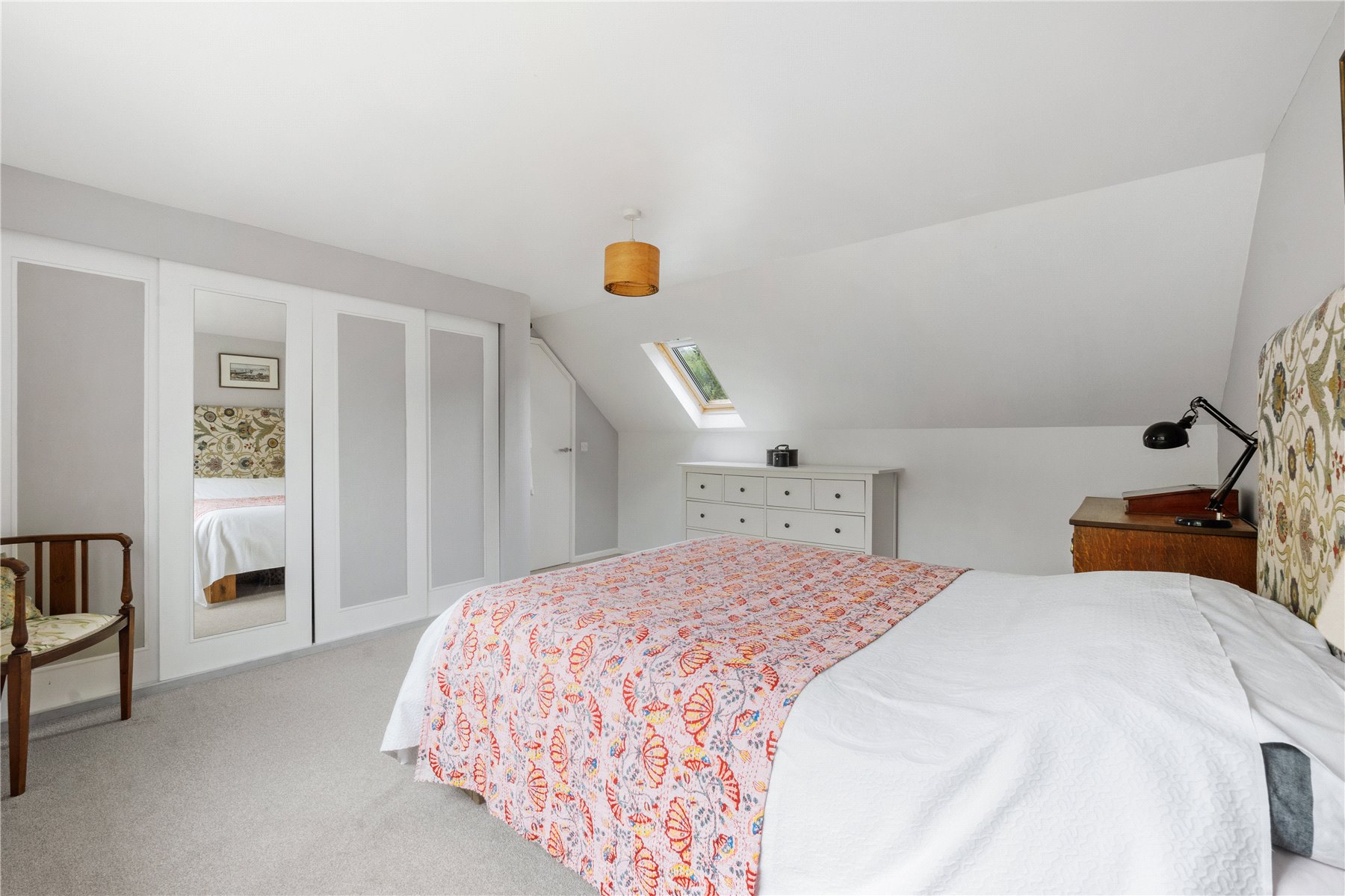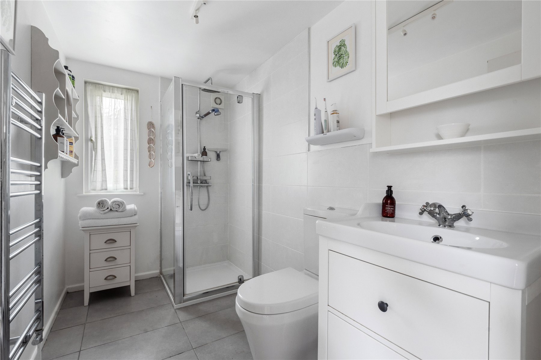 Upstairs, the PRINCIPAL BEDROOM is a lovely place to wake up in spacious and serene, with built-in wardrobes, garden views, and a front skylight that invites even more natural light in. At the opposite end of the landing lies BEDROOM FOUR, this is complete with a front skylight and clever storage solutions tucked into the eaves for those suitcases and Christmas decorations. BEDROOM FIVE has a beautiful garden view thanks to a pillarless window and benefits from a built-in cupboardperfect for a nursery, guest room, or home office. Completing the upper floor is a stylishly appointed FAMILY SHOWER ROOM, with sleek tiled flooring, a modern shower enclosure, vanity wash hand basin, chrome heated towel rail, W.C., and a window to the rear.