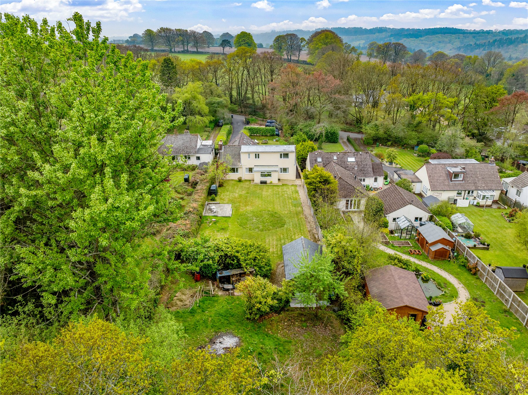 To the rear lies the homes crowning glory: an exceptional garden, filled with wildlife, wildflowers, and wonder. A lawned area with a perfectly positioned patio space is immediately behind the house. There is then a walkway which passes a large wooden workshop ideal for hobbies or storage that winds its way toward a second lawned section which has an abundance of wildflowers. The garden offers ample space for children to play, gardeners to indulge their passion, and nature to flourish.