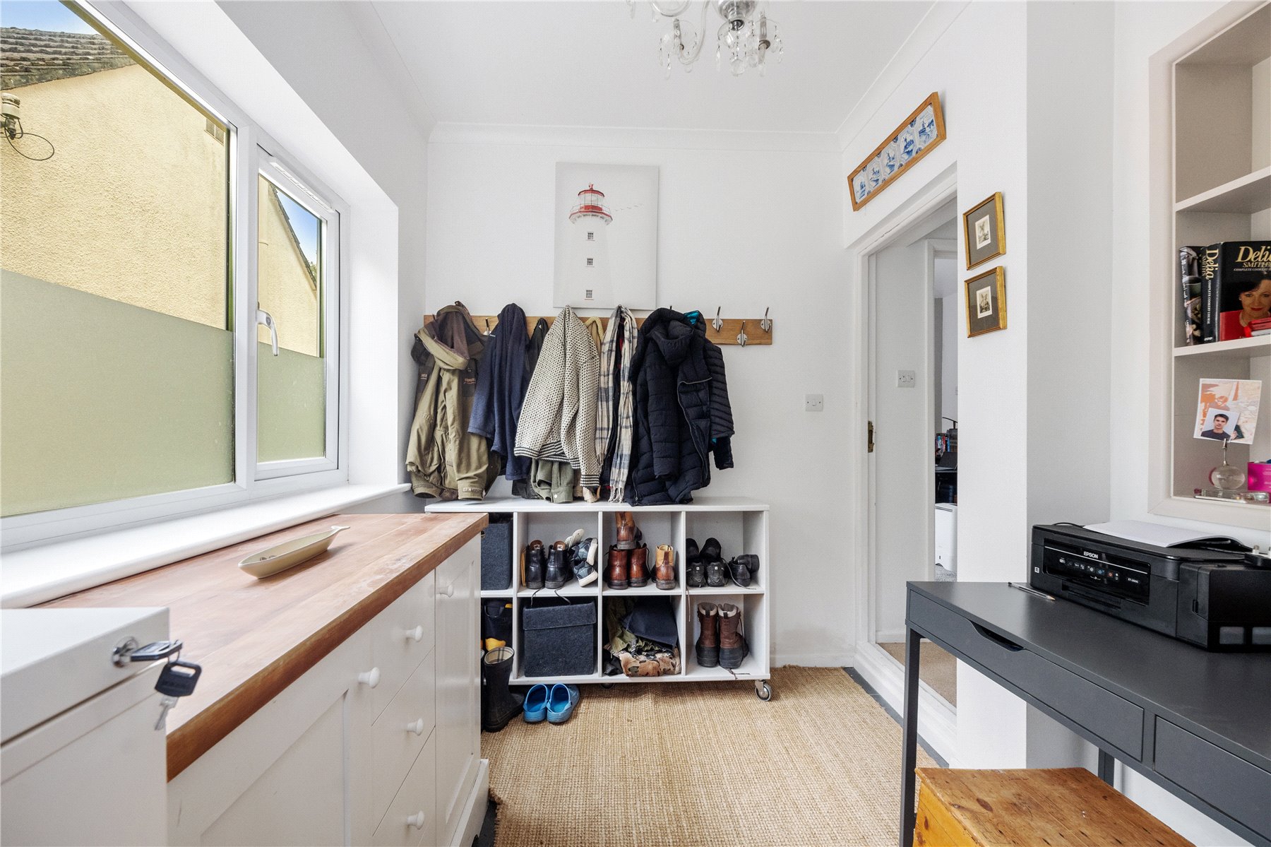 The separate SITTING ROOM offers a cosy retreat, centred around a charming log burner whilst a rear-facing window provides captivating views across the expansive garden. Whether youre curling up in front of the fire on a winters evening or enjoying the garden views in the summer, this space feels timeless and inviting.
