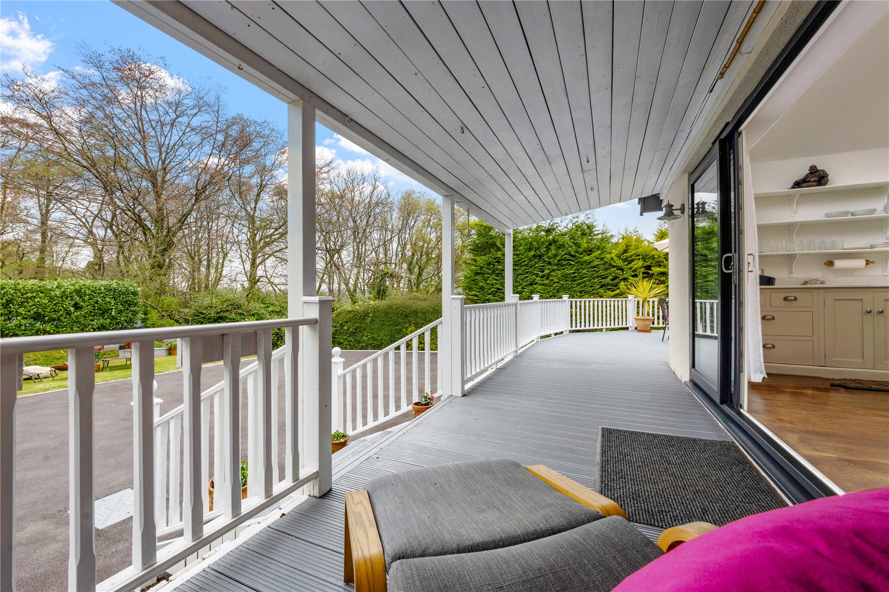 Stepping inside, you are welcomed into a beautifully appointed KITCHEN/ DINING ROOM boasting a fabulous vaulted-ceiling the true heart of the home. Awash with natural light from dual-aspect windows and glazed patio doors, this elegant and expansive space is ideal for family gatherings and relaxed everyday living. A well-proportioned walk-in pantry keeps essentials neatly tucked away, while the layout flows seamlessly onto the sun-kissed front terrace, creating effortless indoor-outdoor living. Underfloor heating compliments this area perfectly and along with the engineered Oak flooring and beautiful worktops.