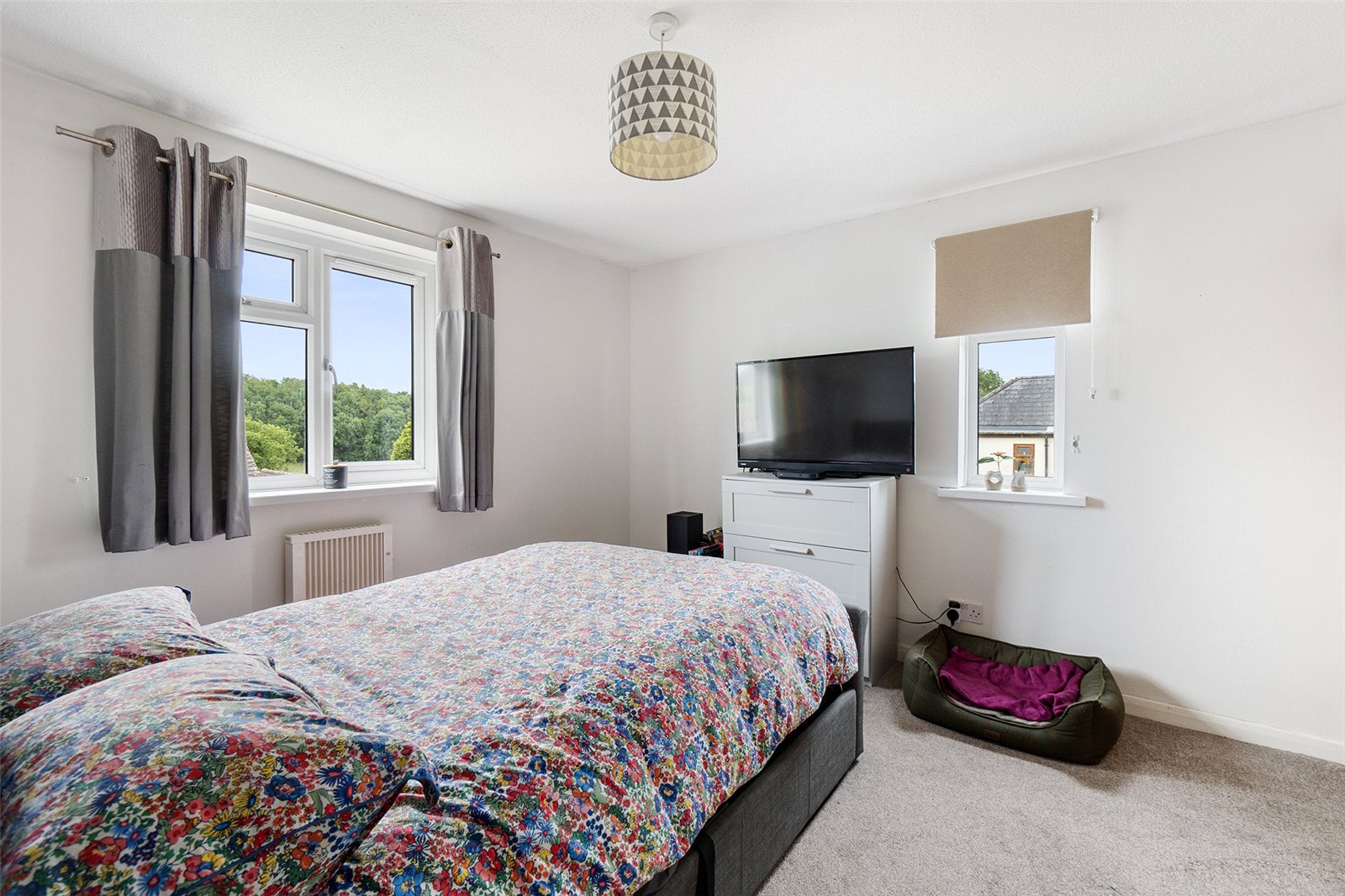 Bedroom One 11'2" x 10'6" (3.4m x 3.2m). Dual aspect room with double glazed windows to the side and front aspects. Built-in double wardrobe, wall mounted electric radiator.
