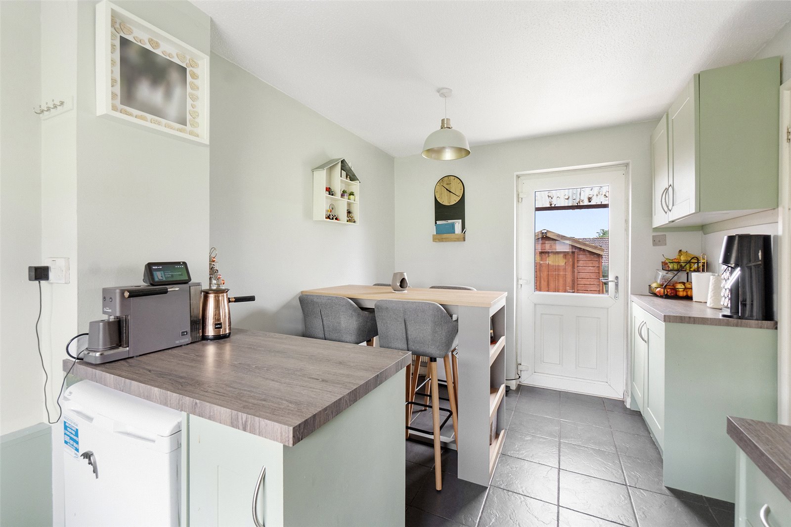 Kitchen/Diner 14'4" x 8'5" (4.37m x 2.57m). Fitted with matching modern wall and base units set beneath worktops with inset ceramic sink. Space for cooker with hood over. Space for base fridge and freezer. Double glazed window to the side aspect and double glazed door out to rear garden. Wall mounted electric radiator.