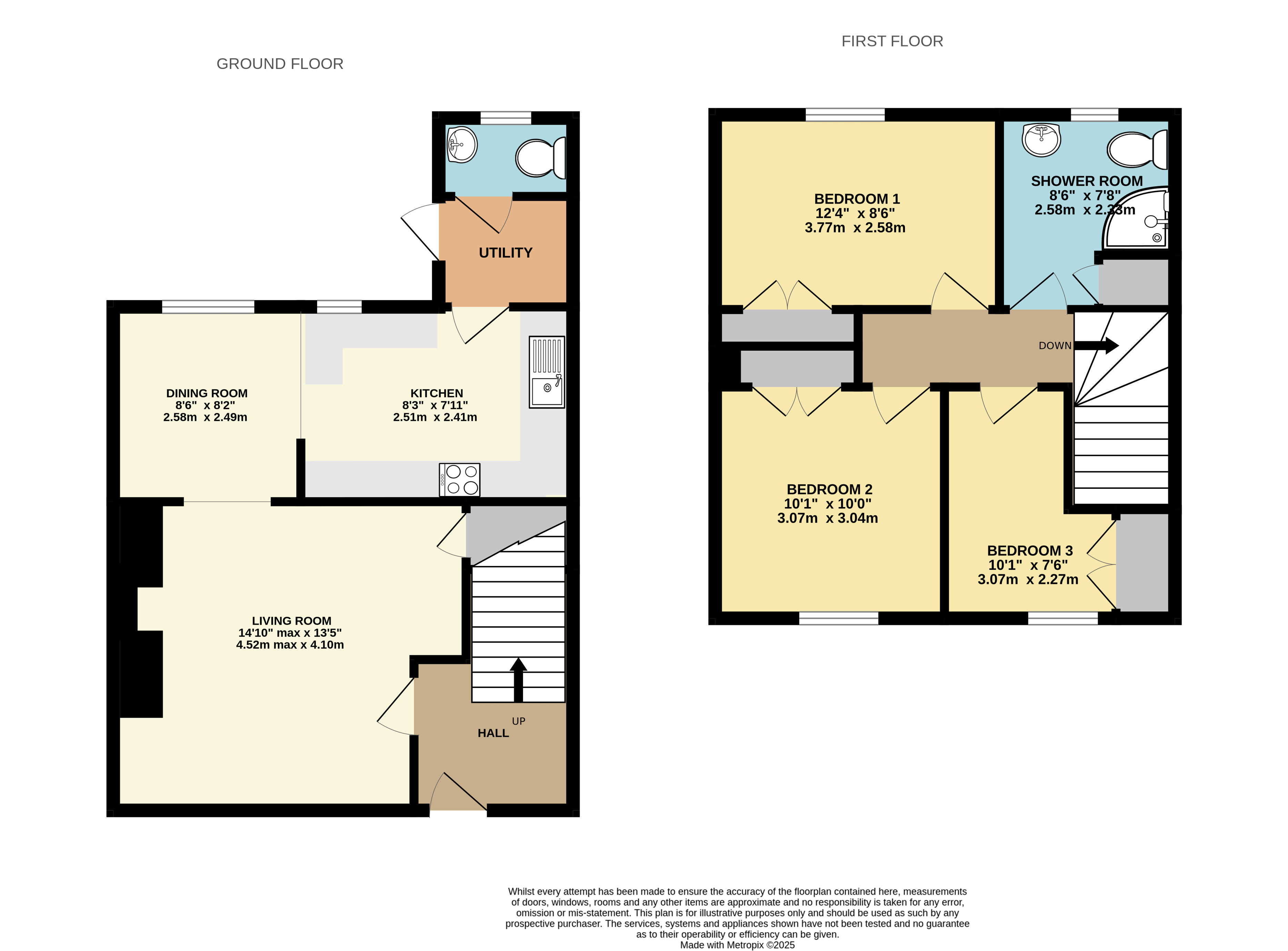 On the first floor, there are two double bedrooms and a good-sized single bedroom. Both bedrooms one and two benefit from fitted wardrobes. The bathroom is well equipped with a shower, WC, and wash hand basin and an airing cupboard housing the hot water tank.