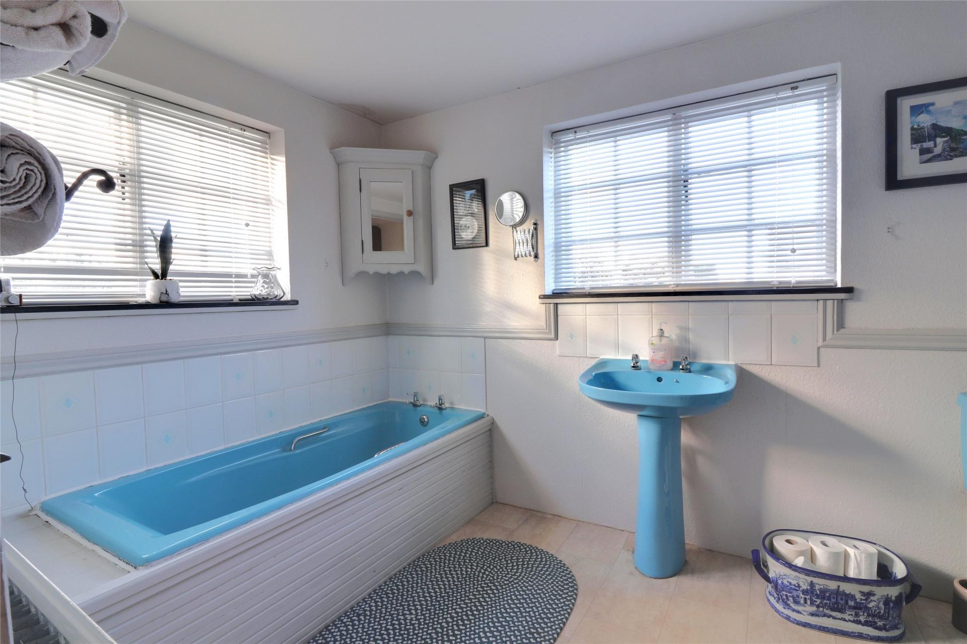 Moving upstairs, a long landing gives access to all principle rooms, the first being the third bedroom. Whilst smaller than the next two this room would still house a double bed, and has built in wardrobes to one corner. The second bedroom lies next, currently fitted with large bunkbeds, leaving plenty of extra space available for wardrobe and drawer units. This room again has its own built in storage to one side of the chimney breast, the other taken up by a useful storage cupboard accessed from the landing. The main bedroom sits at the end of the property, another generous double bedroom with built in storage as well as room for free standing units. This room is nicely tucked away from the rest of the home, and with the family bathroom across the hall could potentially form its own suite, a handy airing cupboard creating further storage space between them. The family bathroom is fitted with both a bath and walk in shower, w.c. and wash hand basin.