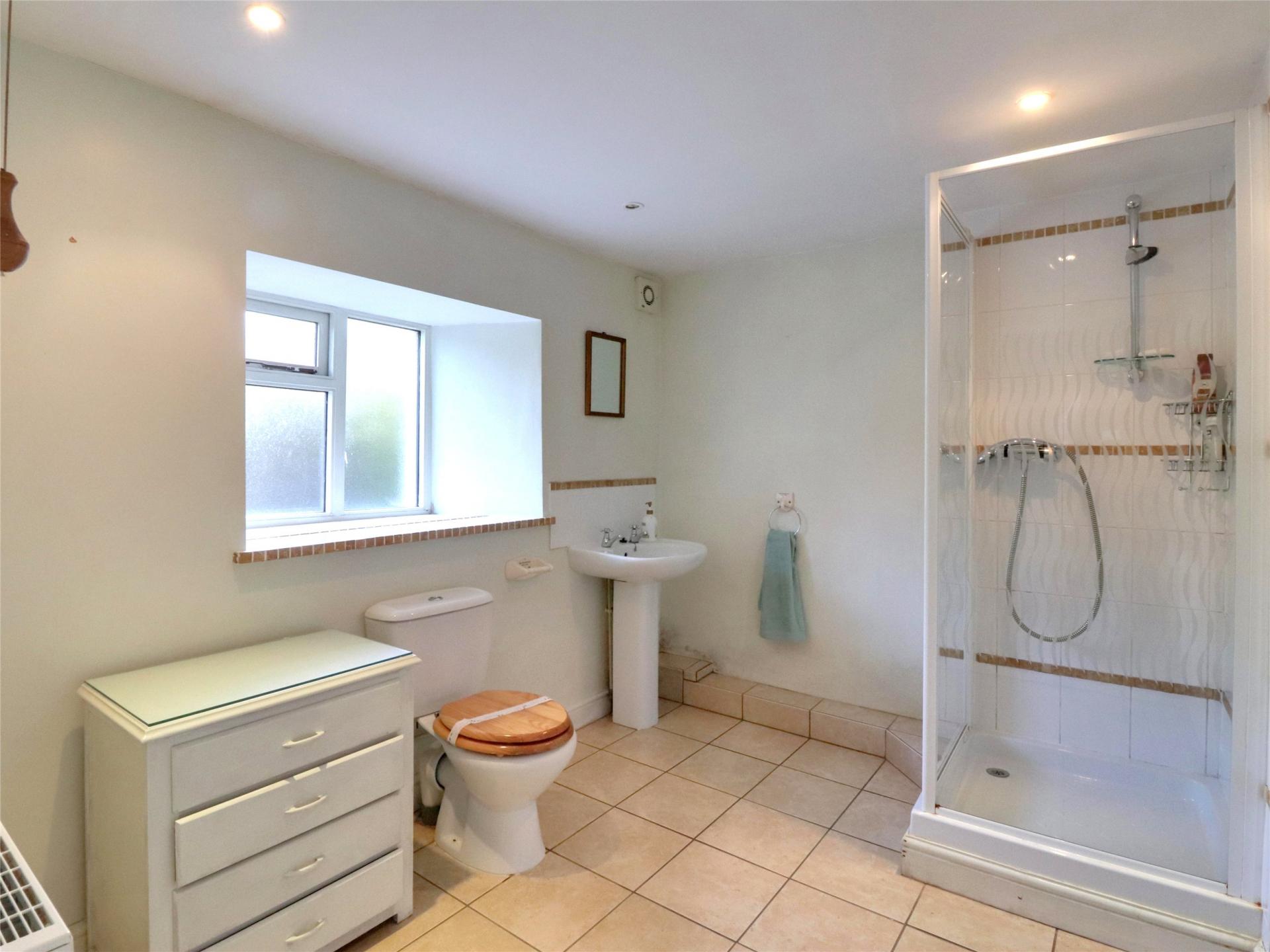 A fine 23 reception hall with oak flooring runs from one side of the house to the other culminating in a conservatory overlooking and with doors into one part of the garden. The sitting room with bay window seat and an impressive stone and brick fireplace with log burner sat upon a raised hearth, is a delightful cosy southerly facing room. The dining room on the opposite side of the hall also enjoys the same orientation and has an equally impressive fireplace with a wood burning stove sat upon a raised hearth with adjacent storage cupboards on either side. The kitchen breakfast room is a delightful double aspect room with windows both on the southern and western side and a stable door leading out. There is an extensive run of block work surfacing with a range of wall, floor cupboards with drawers, bottle racks and spice drawers. A cast iron Esse range cooker nestles in a large brick faced recess giving a warmth to the kitchen and is especially pleasant to stand beside after having been outside on cold day. Finishing off the accommodation downstairs is a good sized utility room and large cloak/shower room.