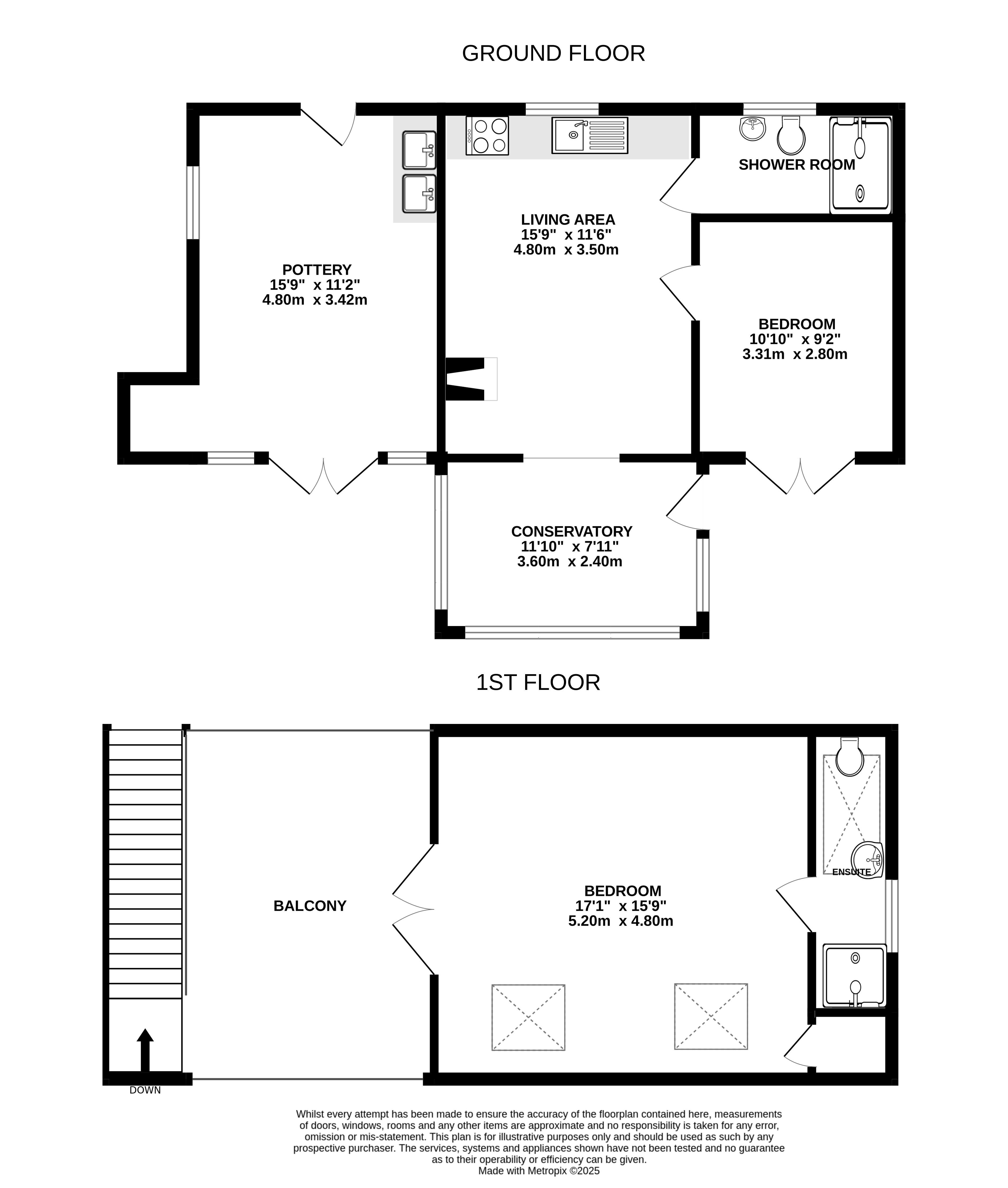 Pottery 15'9" x 11'2" (4.8m x 3.4m).