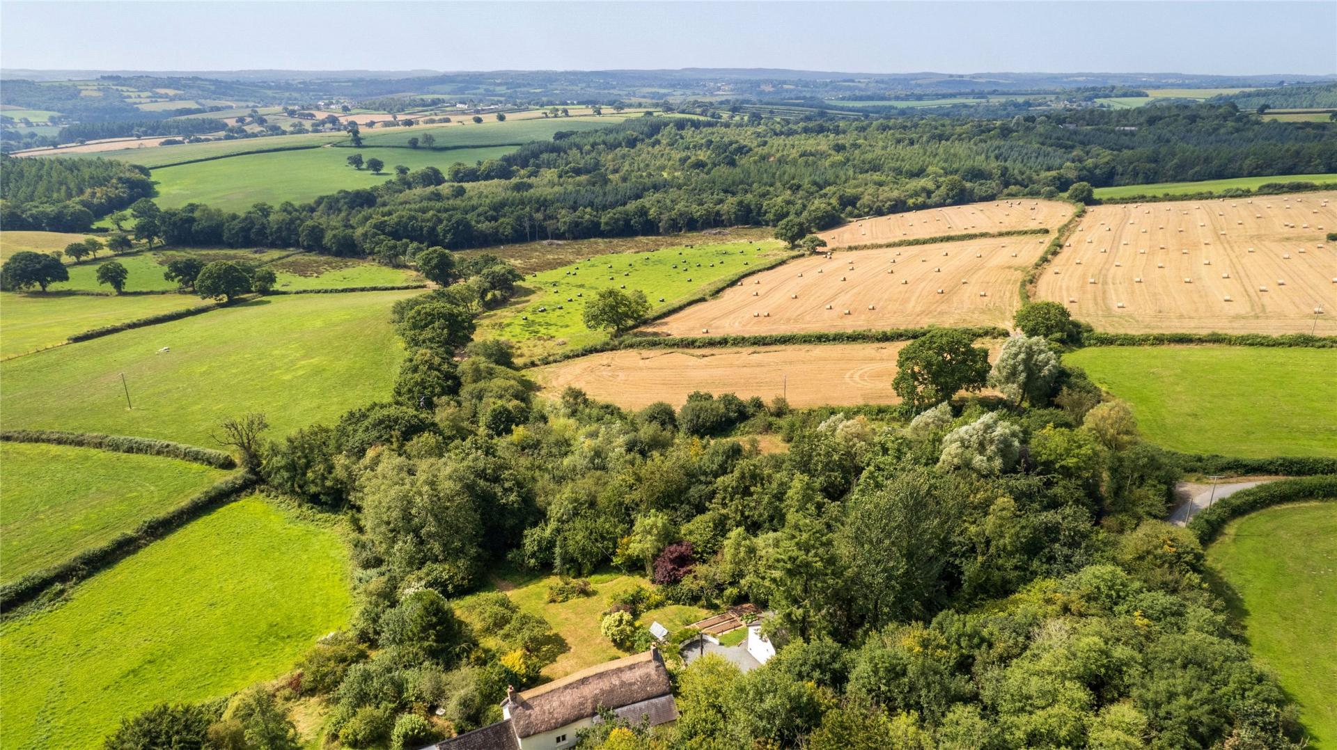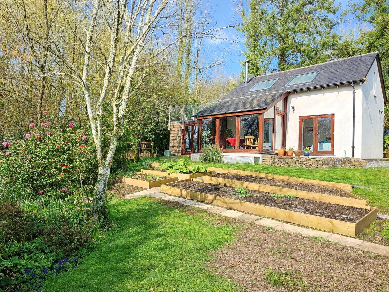 What truly sets this property apart is its exceptional setting being approximately 3.75 acres of woodland and rewilded grounds. The formal garden stretches out from the cottage, mostly laid to lawn, and interspersed with herbaceous borders, apple trees, and raised vegetable beds.