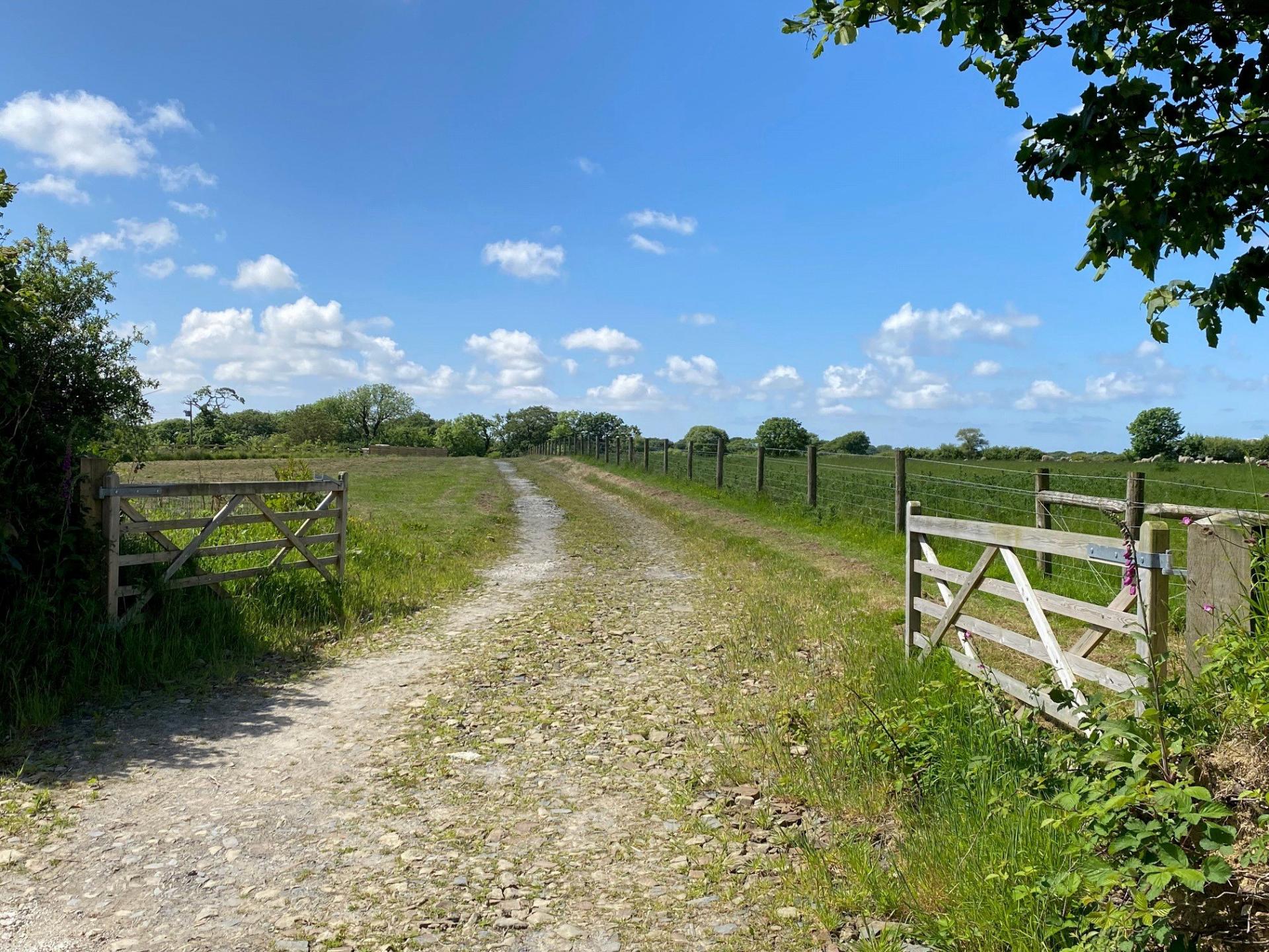 The property is approached via a long drive leading to extensive parking space suitable for multiple vehicles. The gardens are a blank canvas, surrounded by agricultural land and offering stunning rural views. There is a small paddock, perfect for horses, sheep, or goats, contributing to the total land area of approximately 2.9 acres.