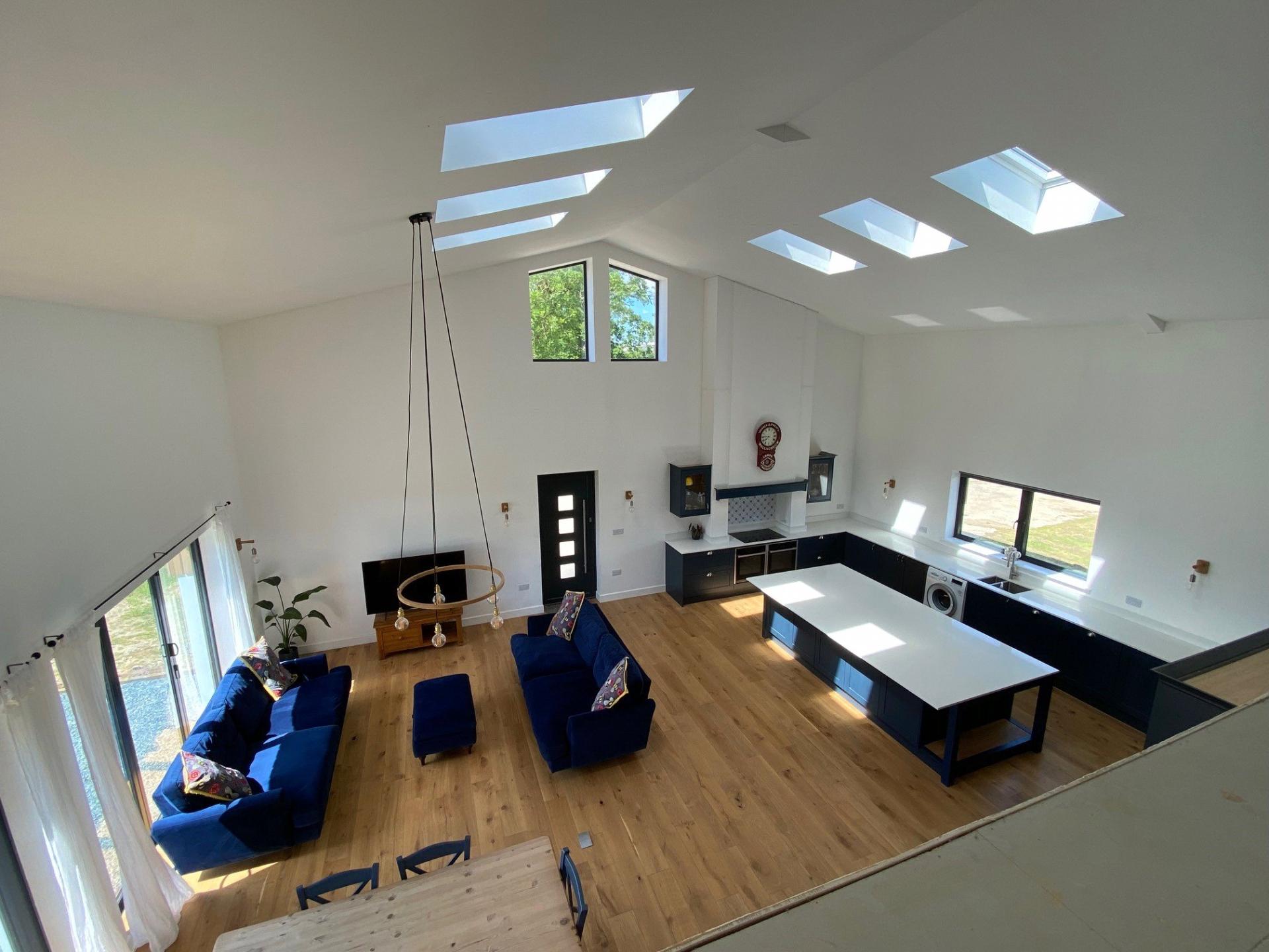 • Stunning open plan kitchen/living/dining room with vaulted double height ceiling.