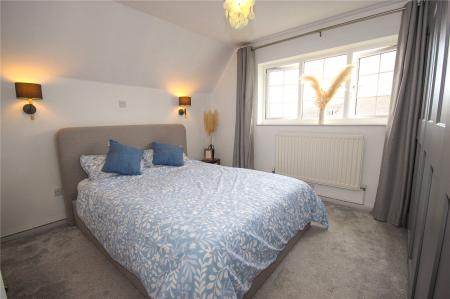 Stairs rise from the entrance wall to the first-floor landing with window overlooking the rear garden. There are two sizable double bedrooms with the principal bedroom being at the rear of the property with window overlooking the church and tower and a door to an en-suite shower room with walk-in fully tiled shower, WC, wash basin. A sliding door opens to over stairs storage which houses the hot water tank. Bedroom 2 is another sizable double bedroom at the front of the property with windows affording views over the pretty town across to the countryside in the distance with fitted wardrobes to the length of one wall.