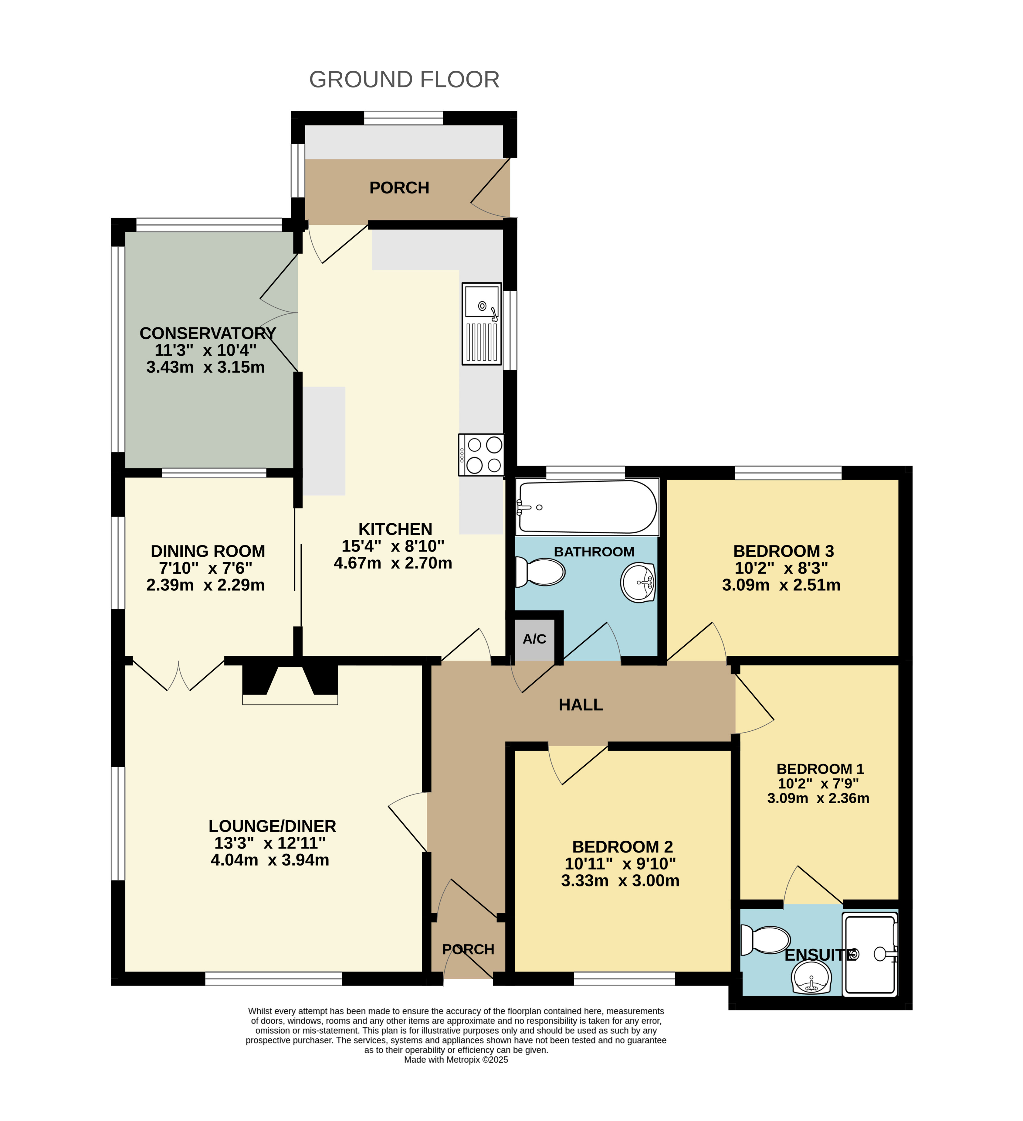 Bedroom 3 10'2" x 8'3" (3.1m x 2.51m).