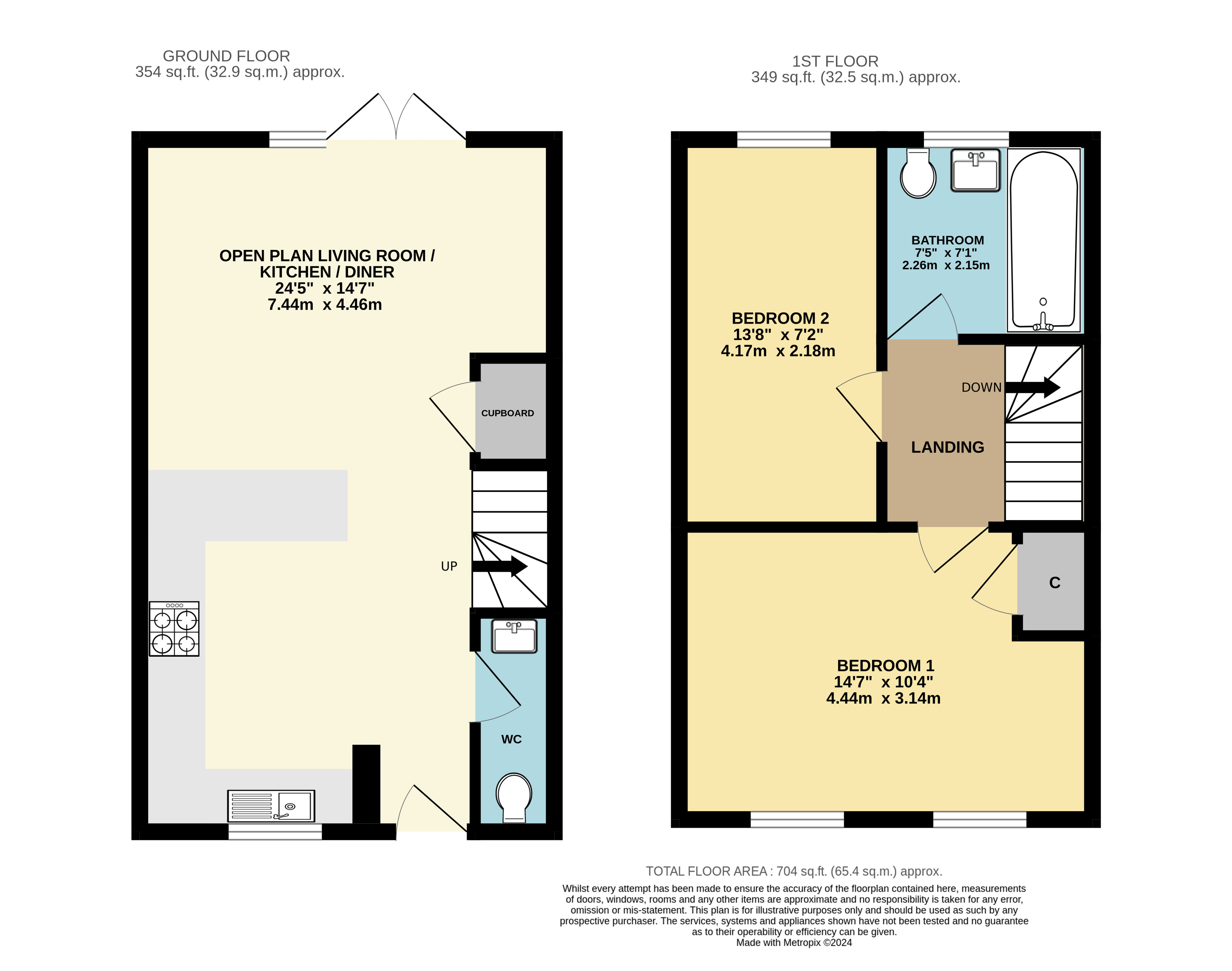 Ascending to the first floor, you will find 2 generously sized double bedrooms, each providing a comfortable retreat with plenty of natural light. These rooms are well-proportioned, allowing for flexible furnishing options to suit your lifestyle. The family bathroom is thoughtfully designed and features a bath, WC, and sink, offering a clean and sophisticated space to unwind and refresh.