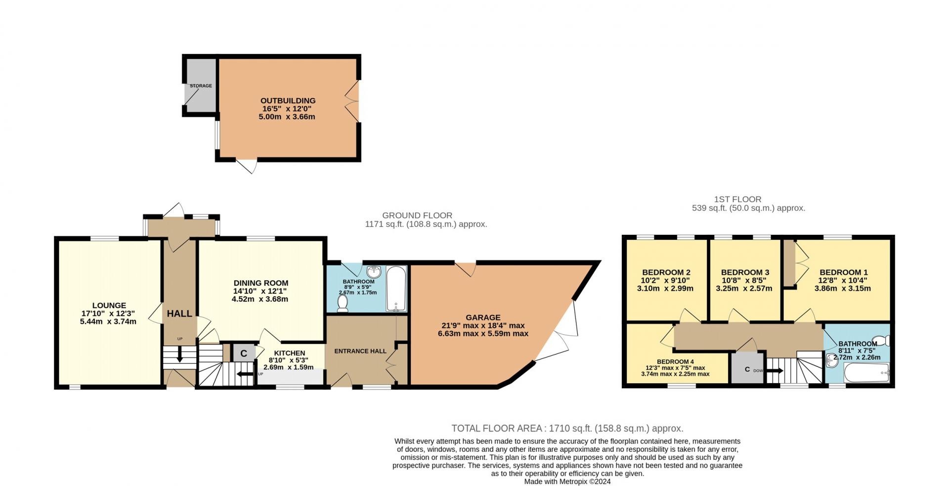 Garage 21'9" max x 18'4" max (6.63m max x 5.6m max).