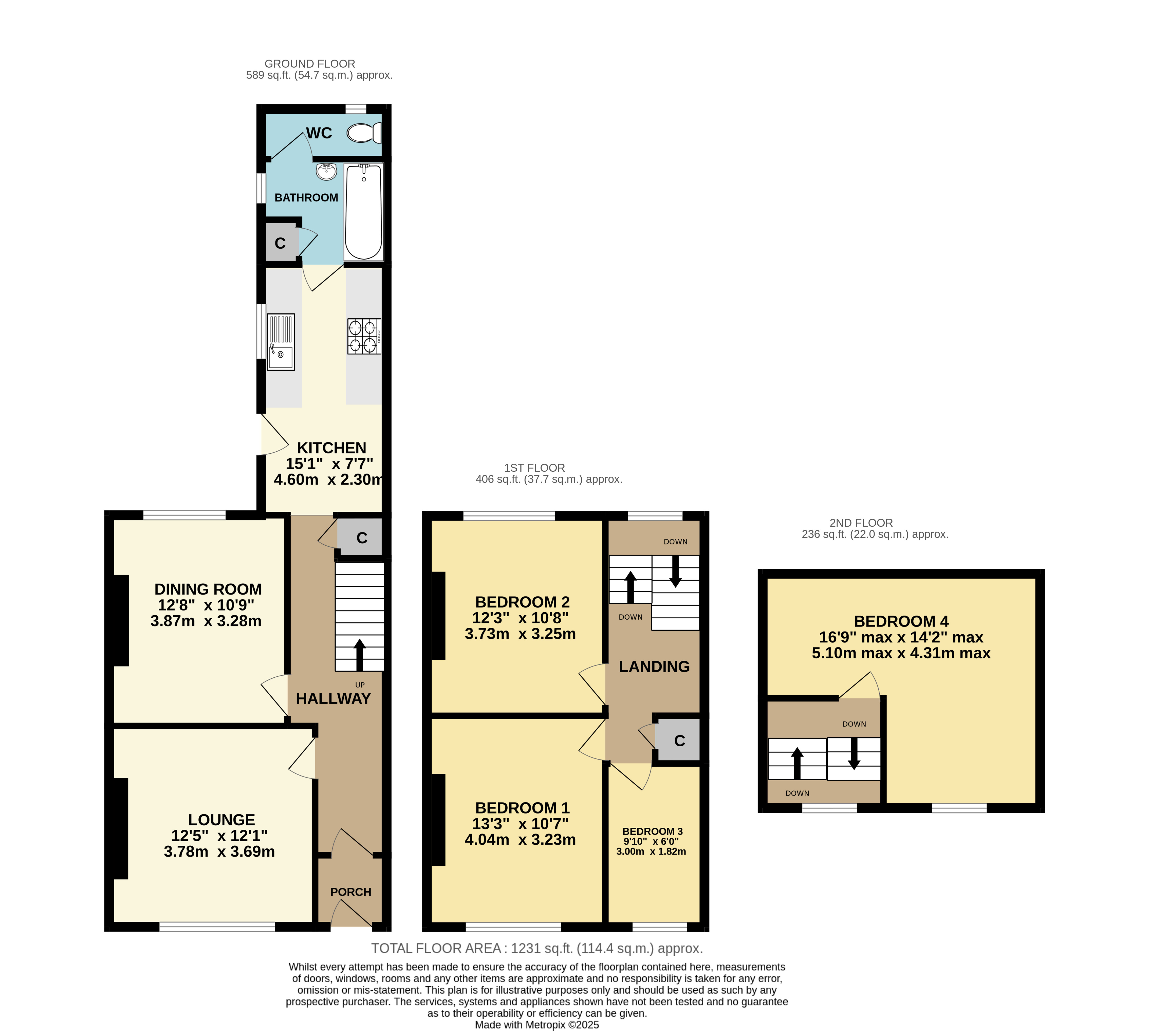 Bedroom 4 16'9" max x 14'2" max (5.1m max x 4.32m max).