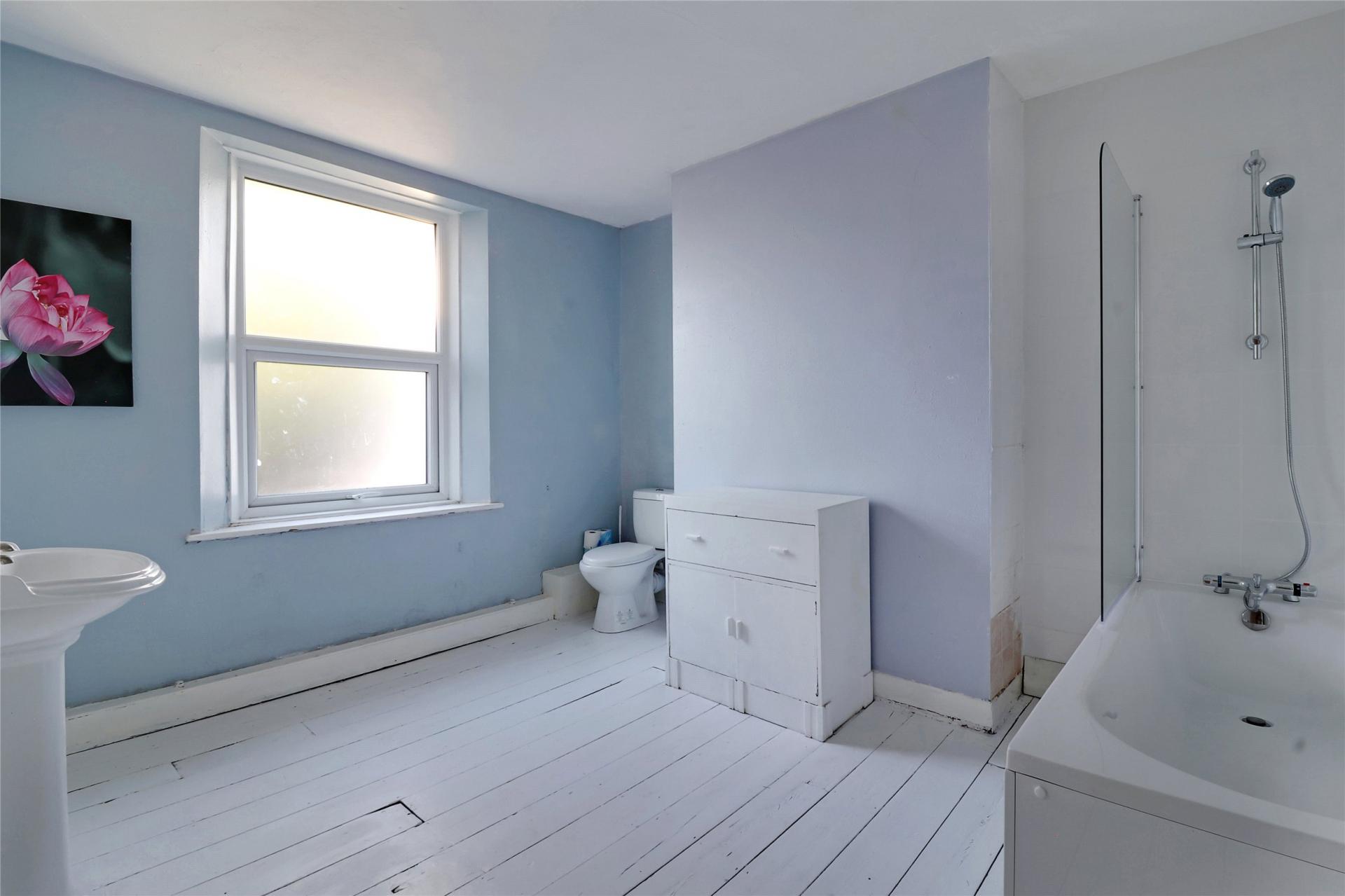 On the first floor, you will find a good-sized double bedroom positioned at the front of the property, along with a modern bathroom fitted with a white three-piece suite.