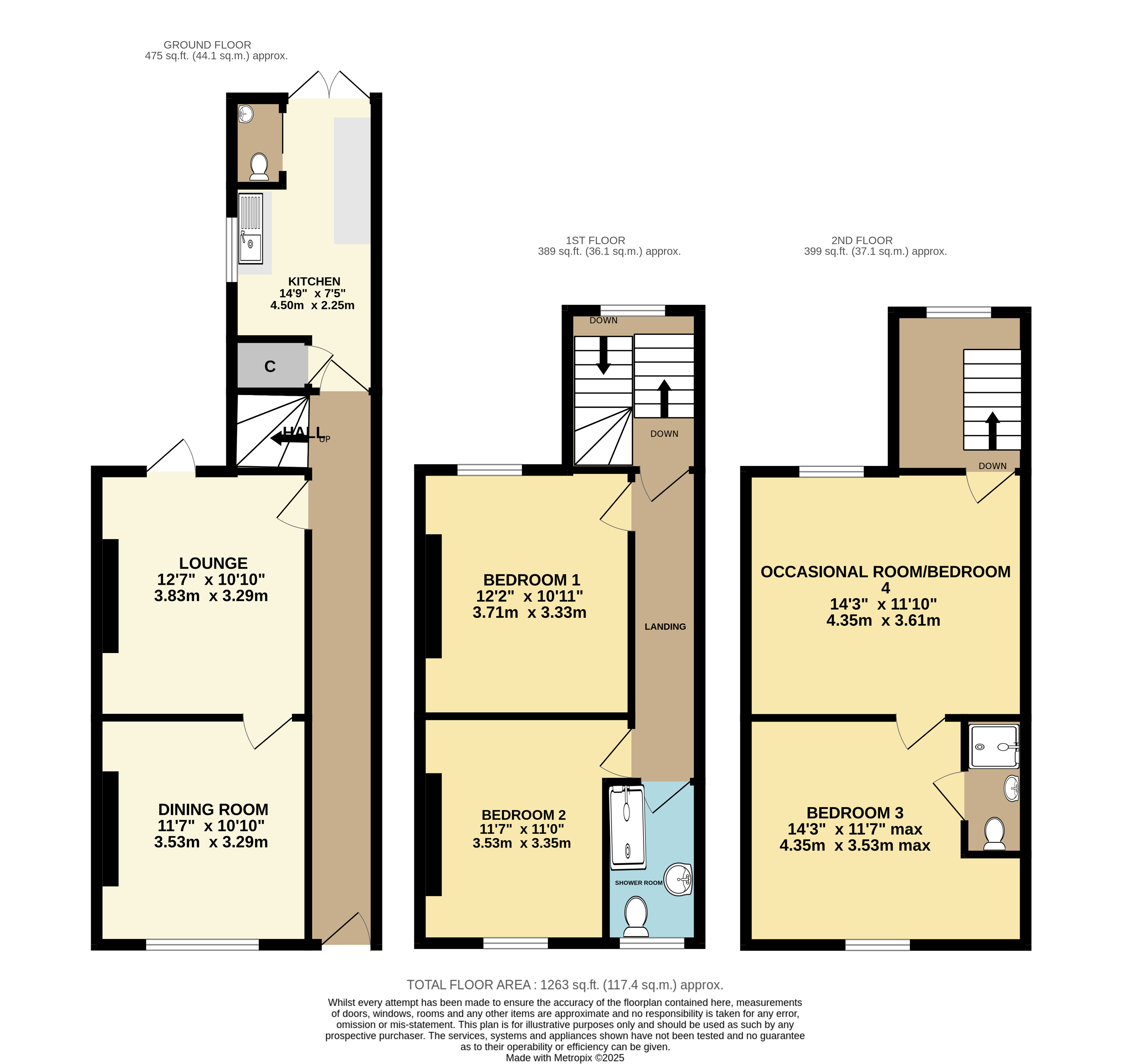 Bedroom 3 14'3" x 11'7" max (4.34m x 3.53m max).
