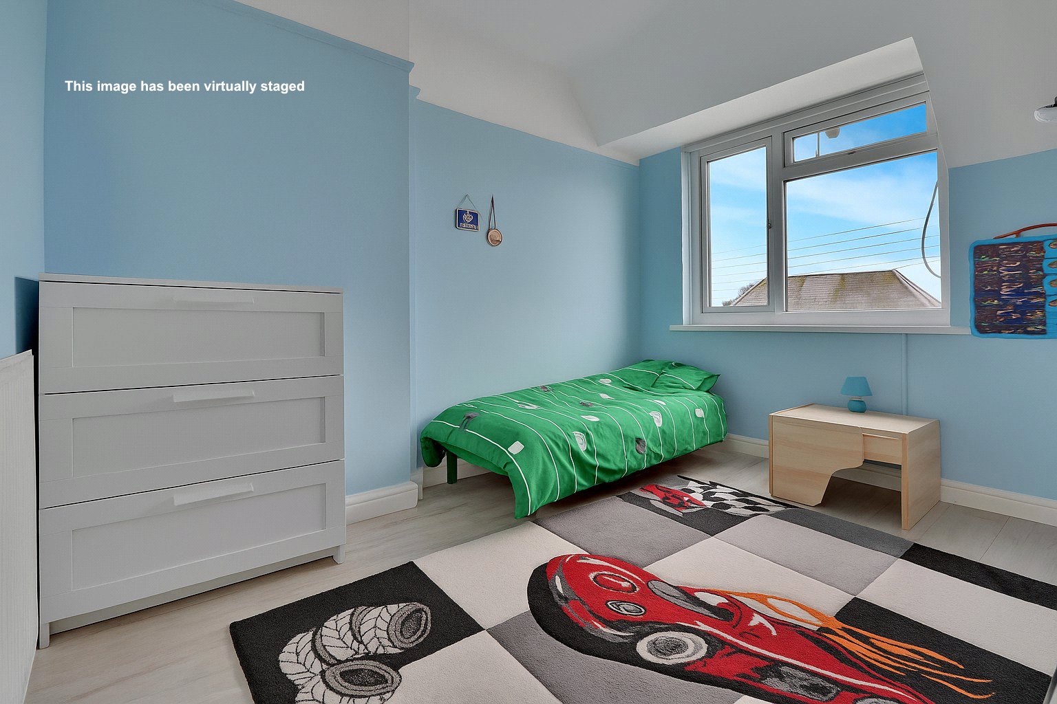 The third bedroom is a well-proportioned single room that provides more than just sleeping space, as it also offers convenient access to the loft via a staircase. This additional area could serve perfectly as a teenager's gaming den, a home office or extra storage.