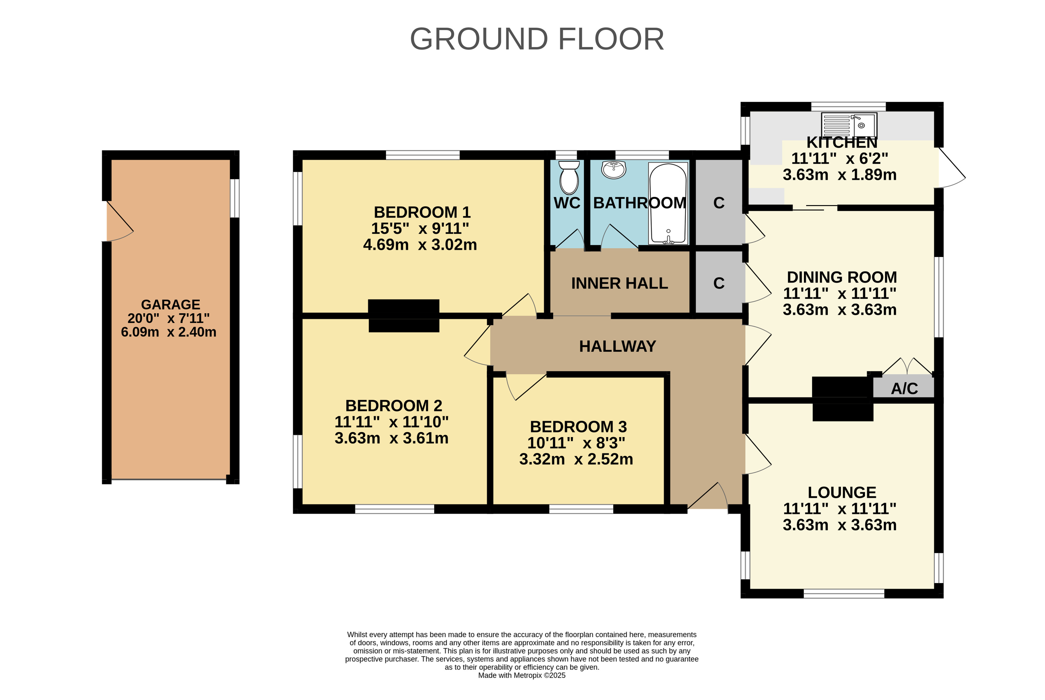 Garage 20' x 7'11" (6.1m x 2.41m).