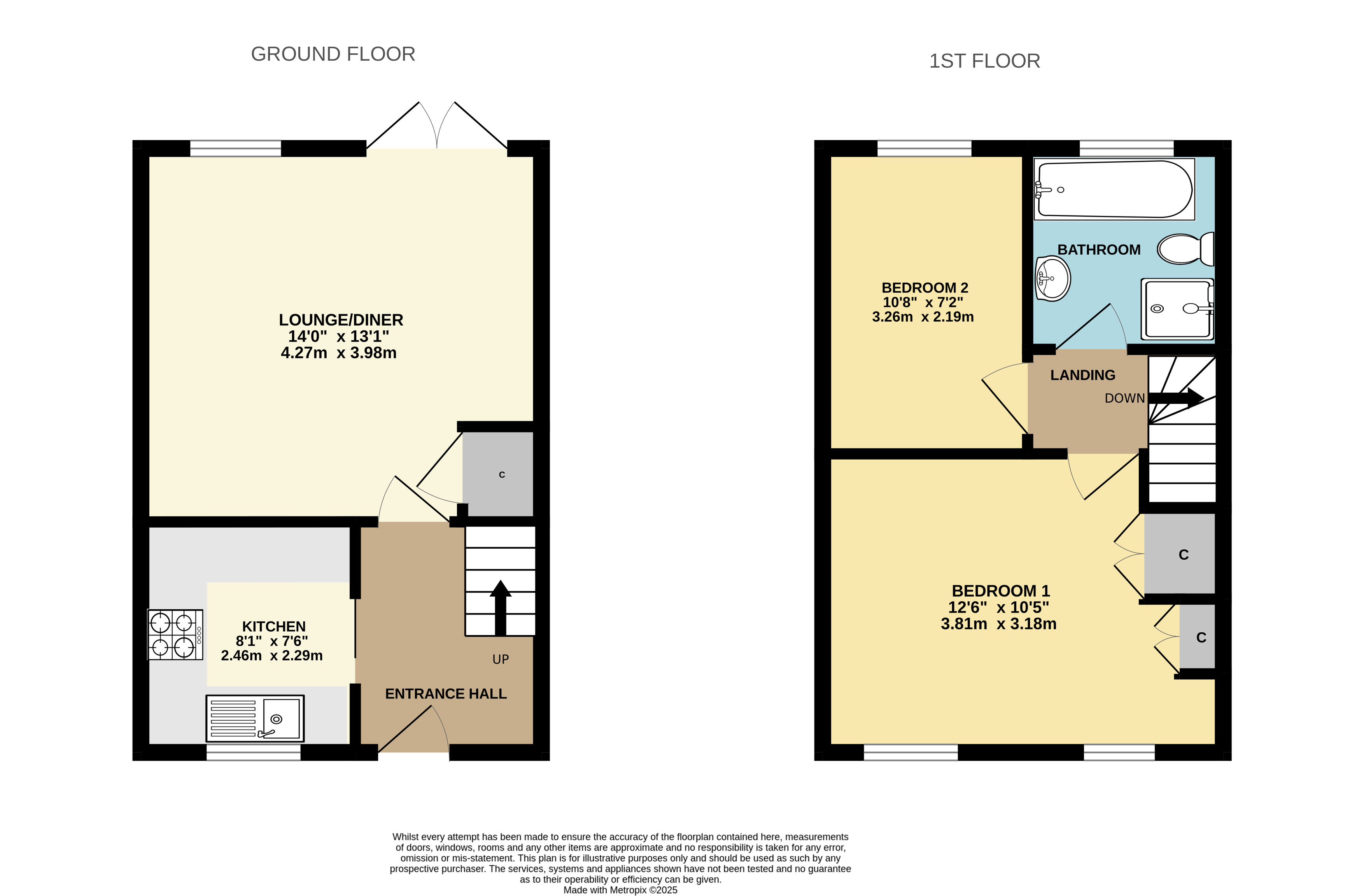 Bedroom 2 10'8" x 7'2" (3.25m x 2.18m).