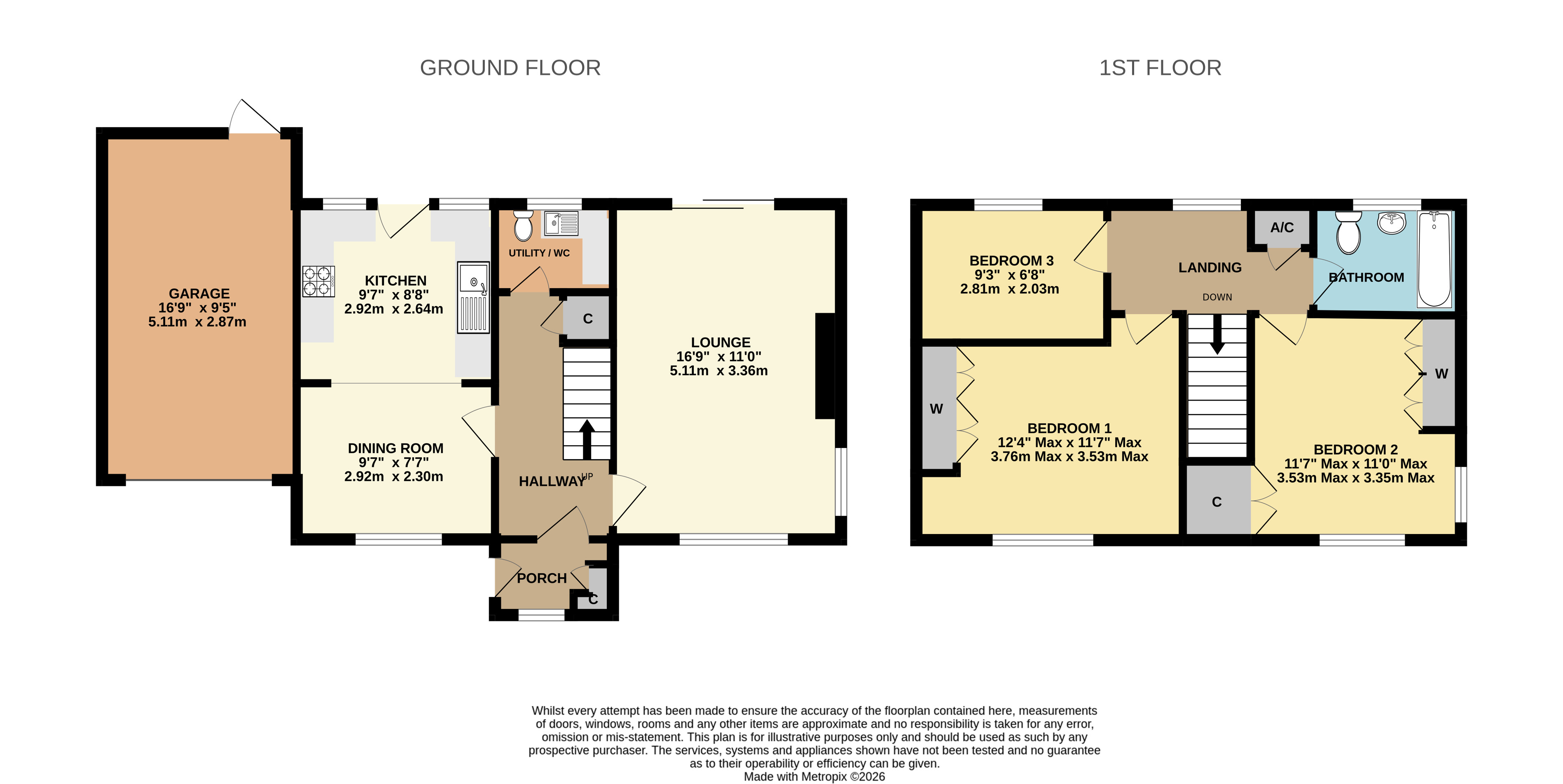 Garage 16'9" x 9'5" (5.1m x 2.87m).