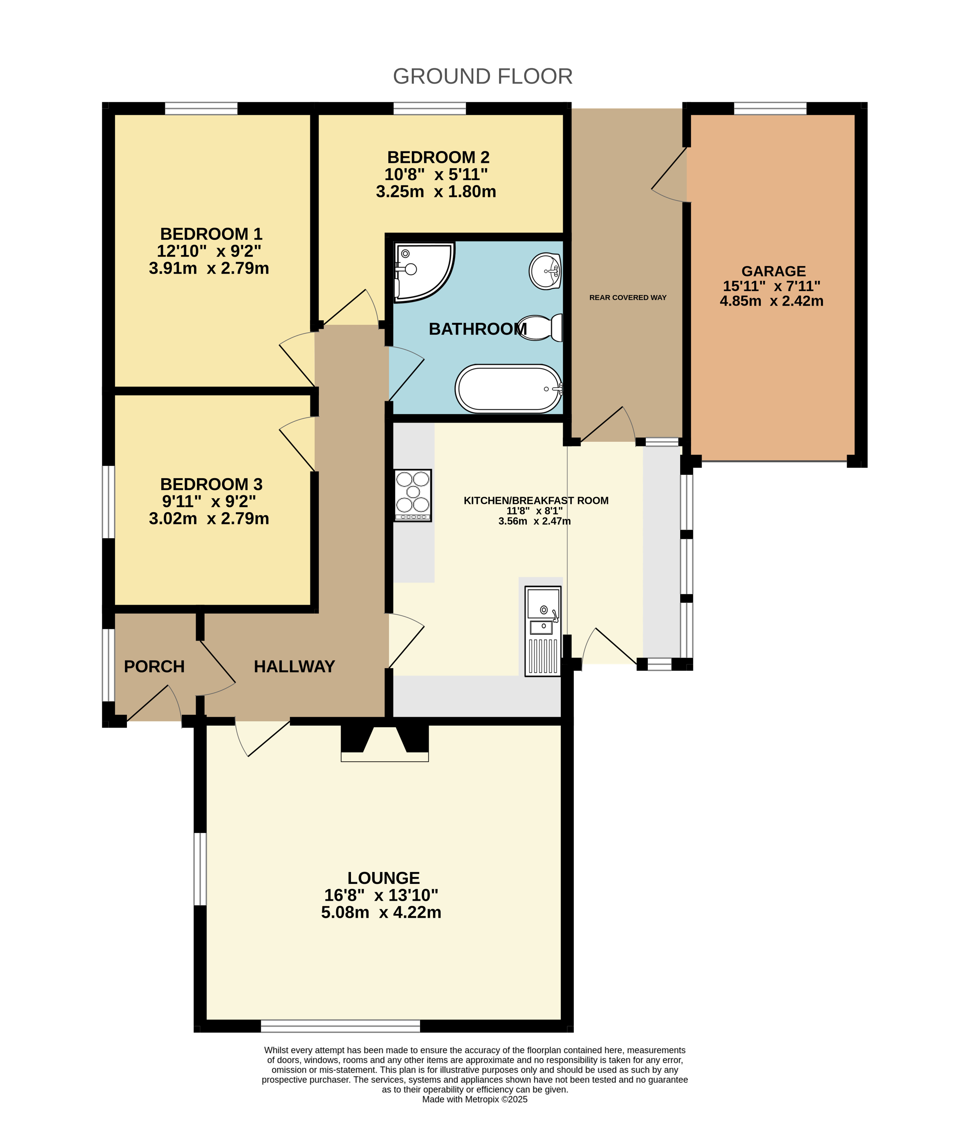 Garage 15'11" x 7'11" (4.85m x 2.41m).