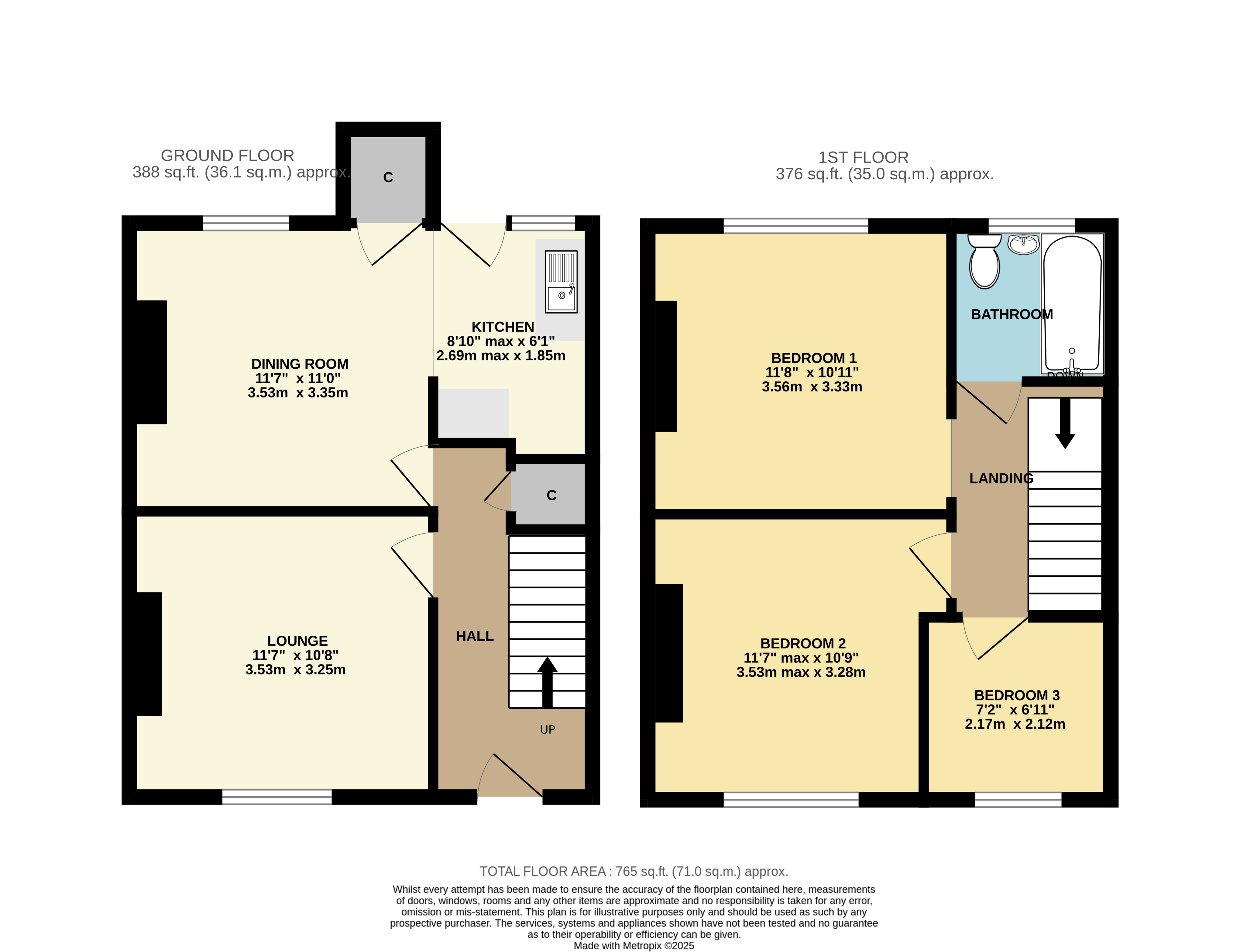 Bedroom 1 11'8" x 10'11" (3.56m x 3.33m).