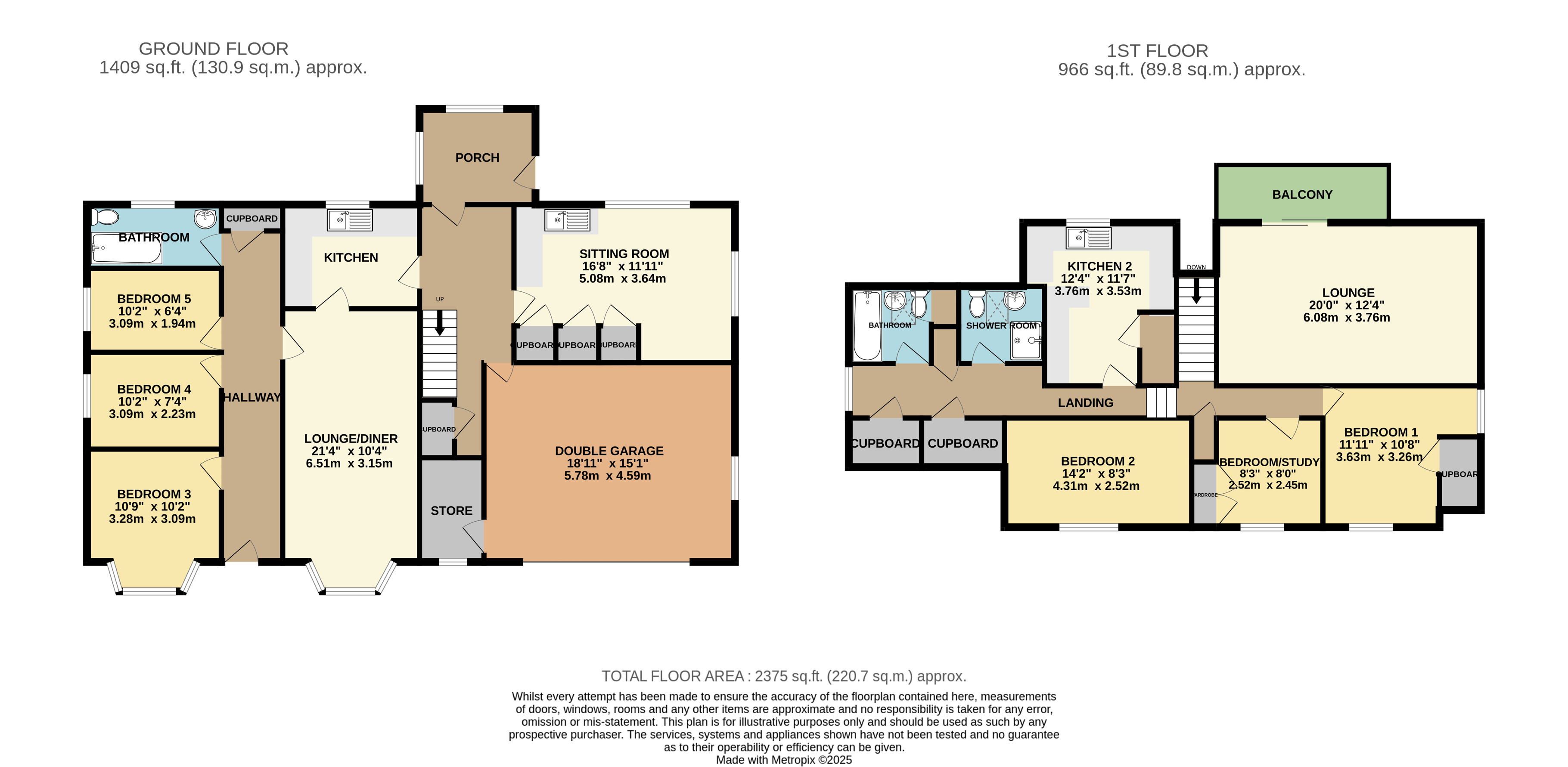 The remainder of the property is its own self-contained space with rear porch, stairs to the first floor. To the ground floor is a large reception room with kitchen area and door to garage. The first floor has a further two/three bedrooms, kitchen with views, lounge and balcony overlooking the Great Field.