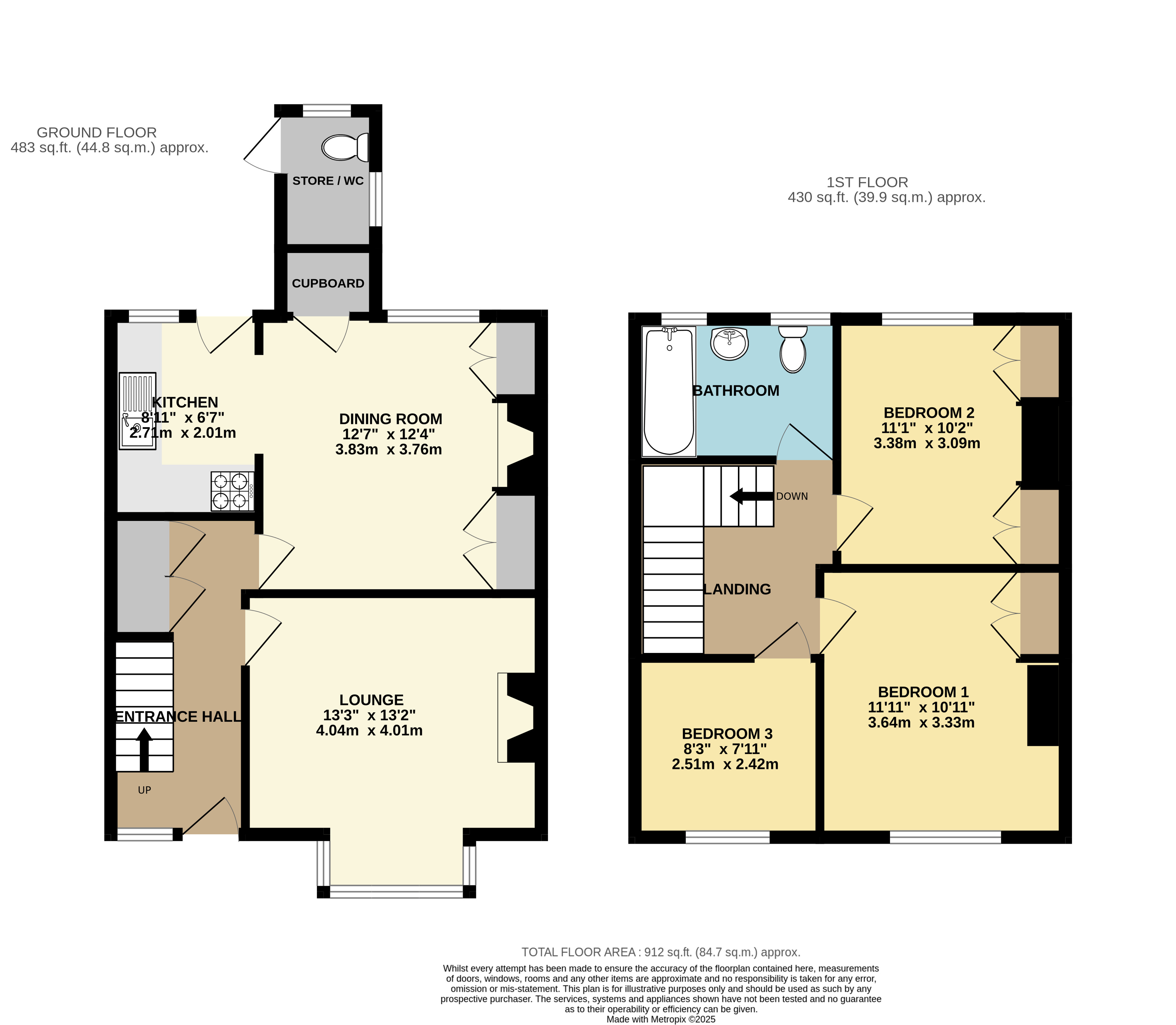 Bedroom 3 8'3" x 7'11" (2.51m x 2.41m).