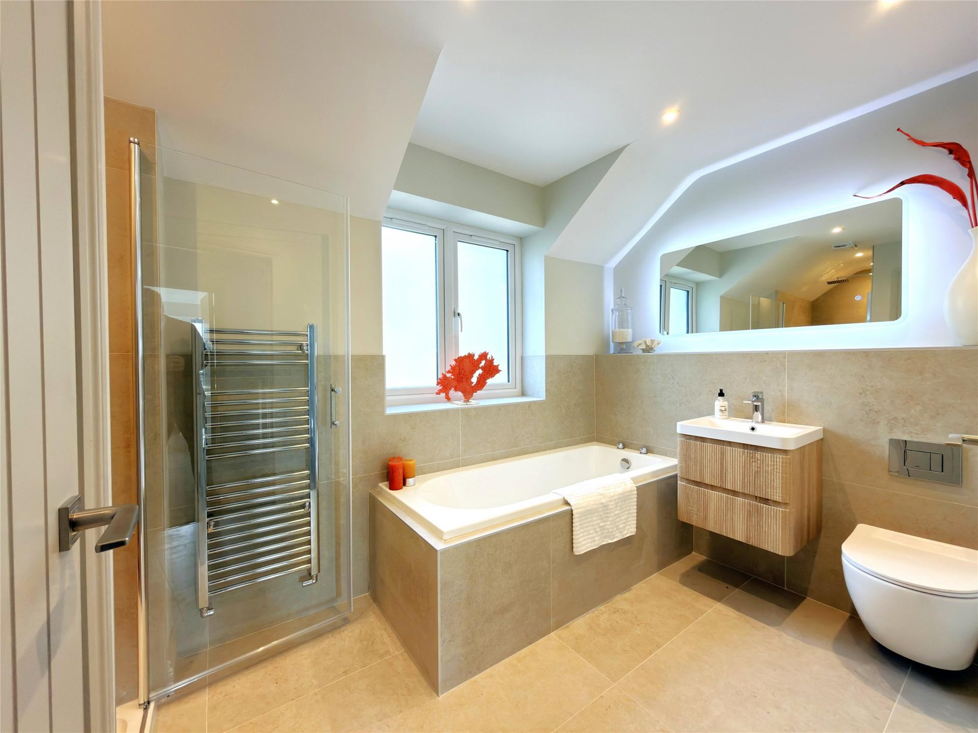The first floor provides three well-proportioned double bedrooms. The principal bedroom has its own en-suite shower room, while the landing gives access to a four-piece family bathroom for the remaining bedrooms.