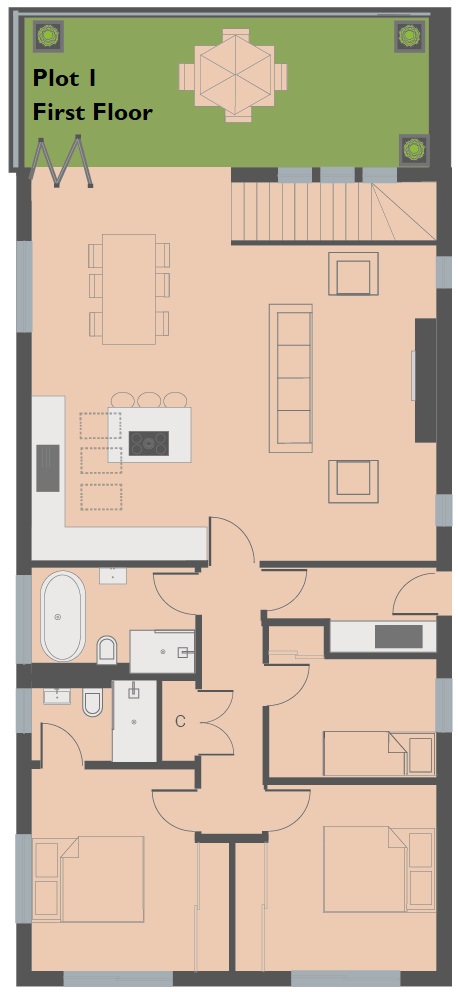- Sunny front roof terrace garden accessed via bi-folding doors from the living room