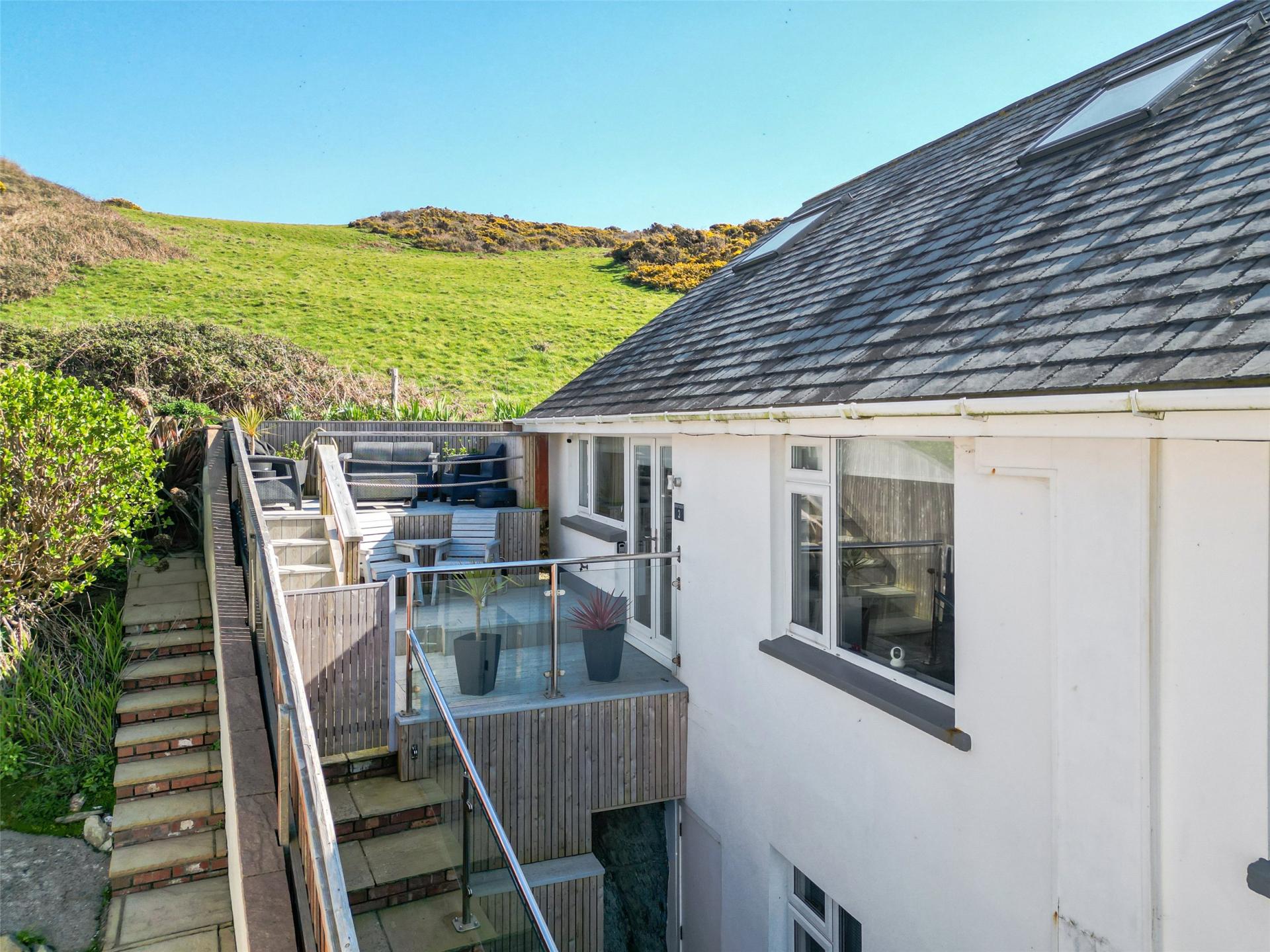 - Private two terrace with sea views and backing on to National Trust