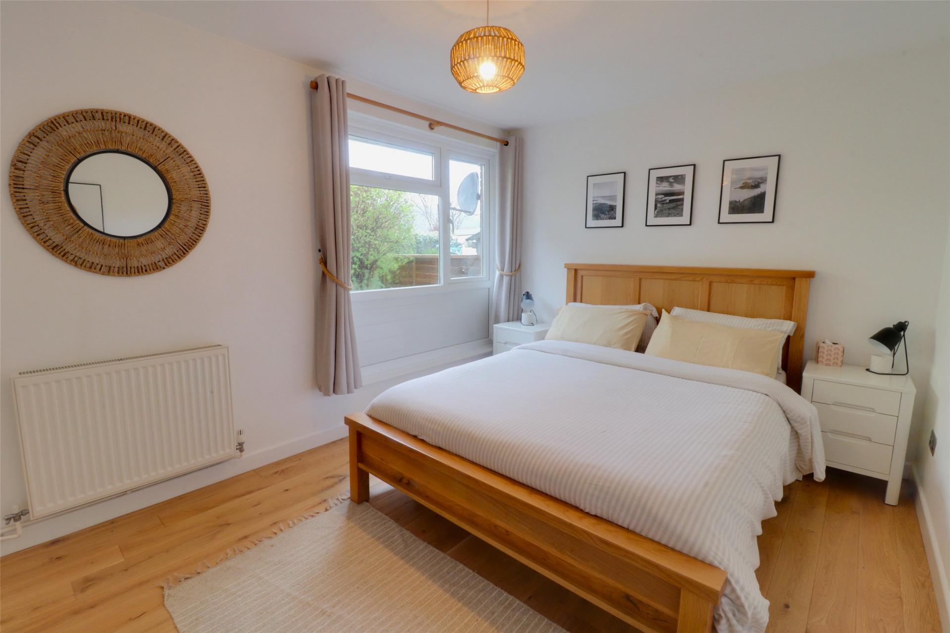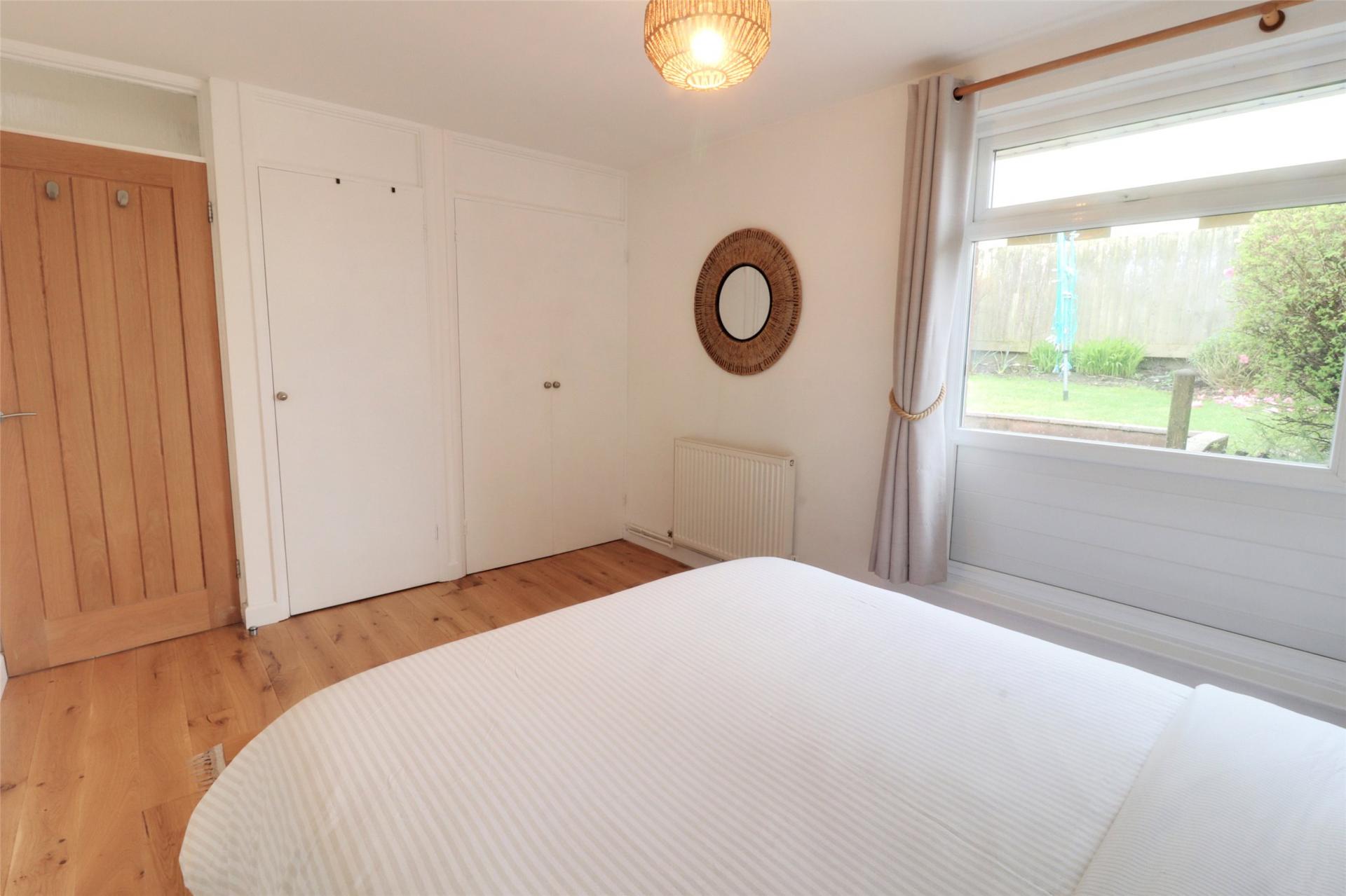 The generously sized bedroom features two built-in wardrobes, maximizing floor space. A large window overlooks the rear garden, filling the room with light and contributing to its peaceful and calming ambianceperfect for a variety of potential buyers.