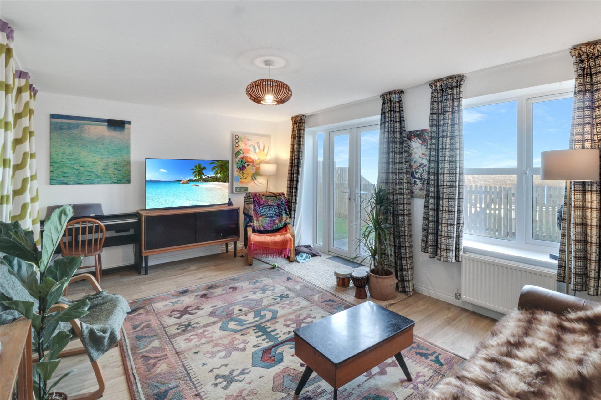 - Contemporary lounge with stunning French doors onto the rear garden.