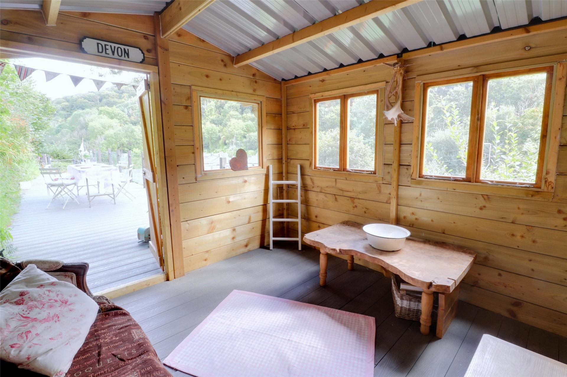 - Elevated composite decked area with stunning views and timber outbuilding