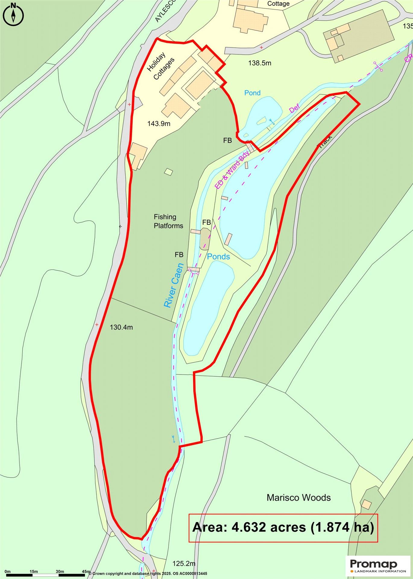 - 2 large lakes and the River Caen flowing through