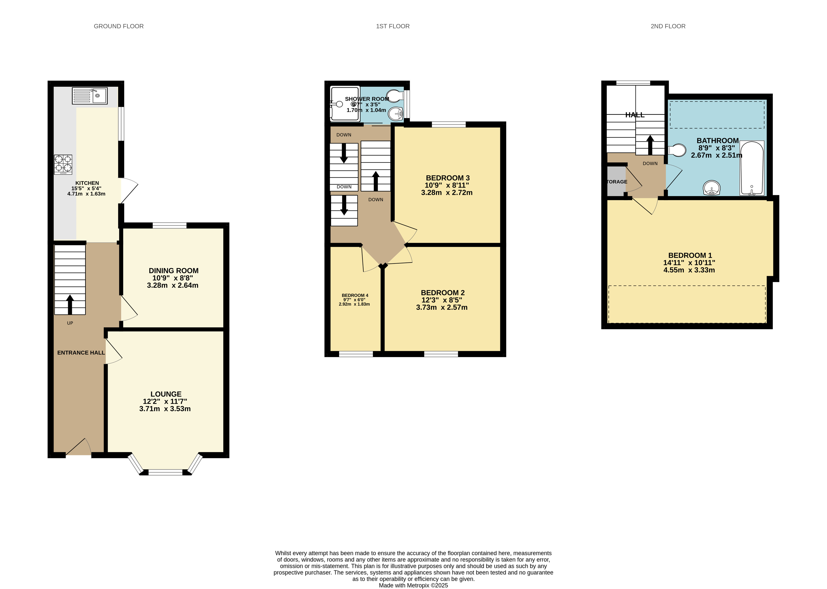Bedroom 3 10'9" x 8'11" (3.28m x 2.72m).